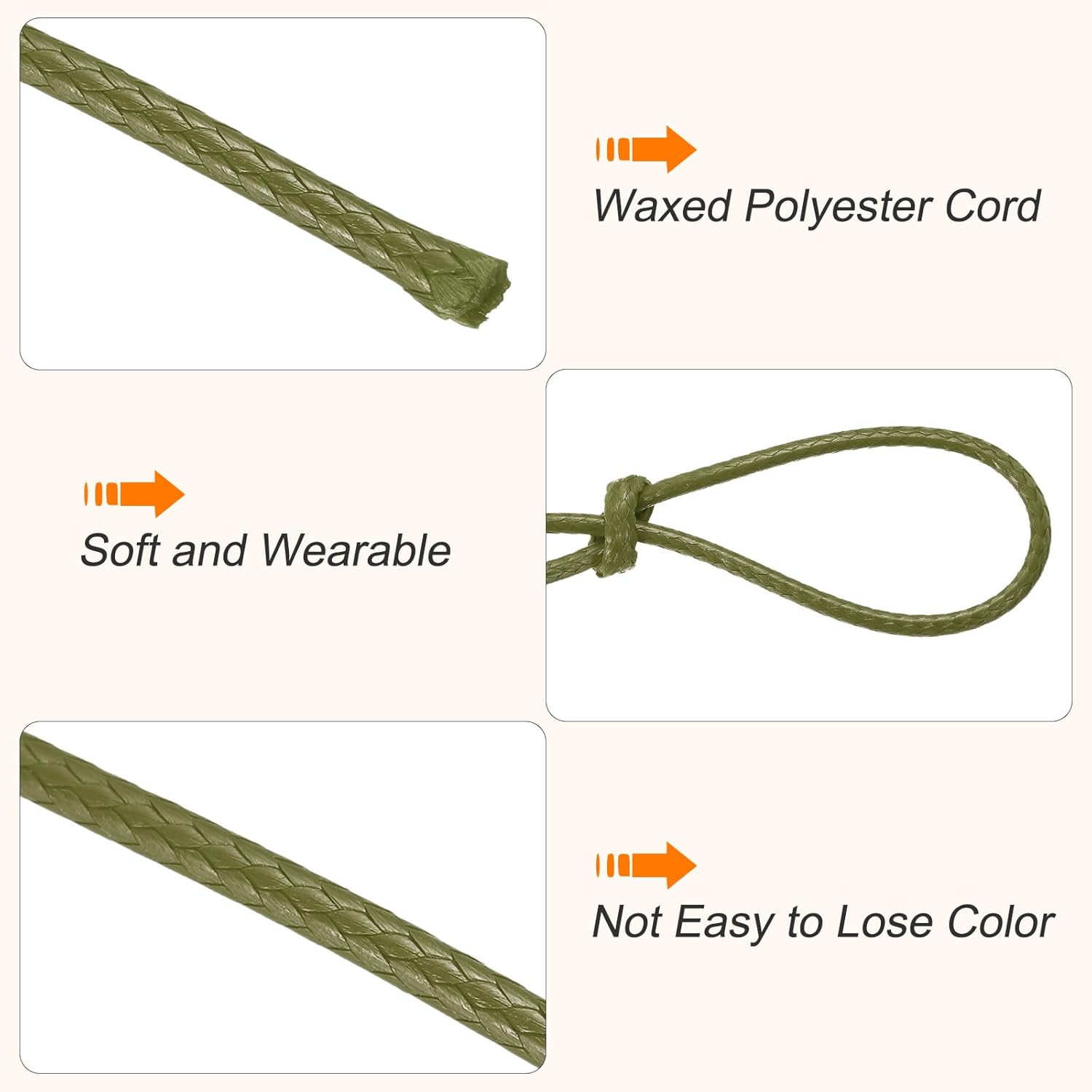 MECCANIXITY Waxed Cord 1.5mm Waxed Thread 87 Yard Wax String Leather Cord for Bracelet Making, Necklaces, Beading, Jewelry Making and DIY Crafts(Army Green)