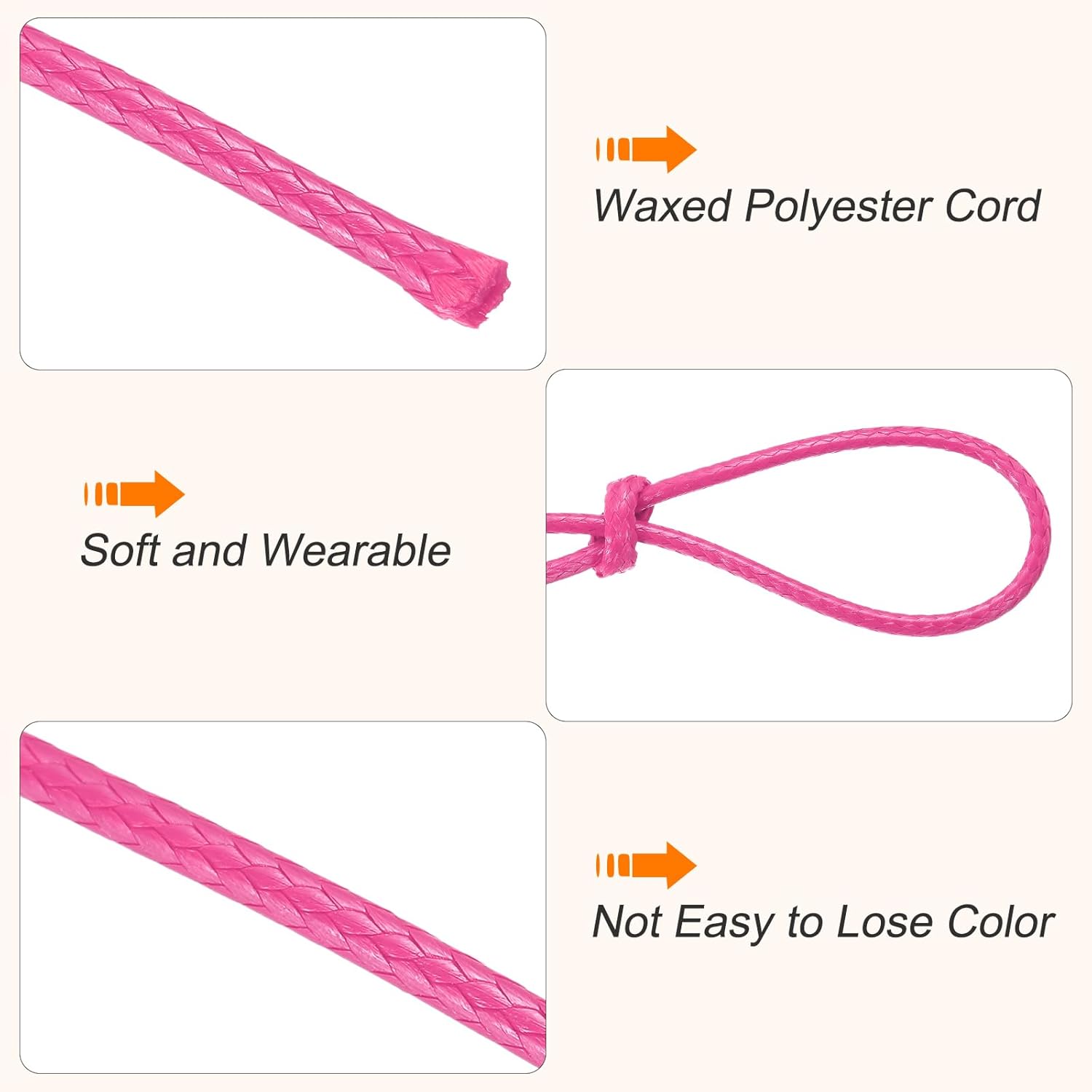 MECCANIXITY Waxed Cord 1mm Waxed Thread 87 Yard Wax String Leather Cord for Bracelet Making, Necklaces, Beading, Jewelry Making and DIY Crafts(Dark Pink)