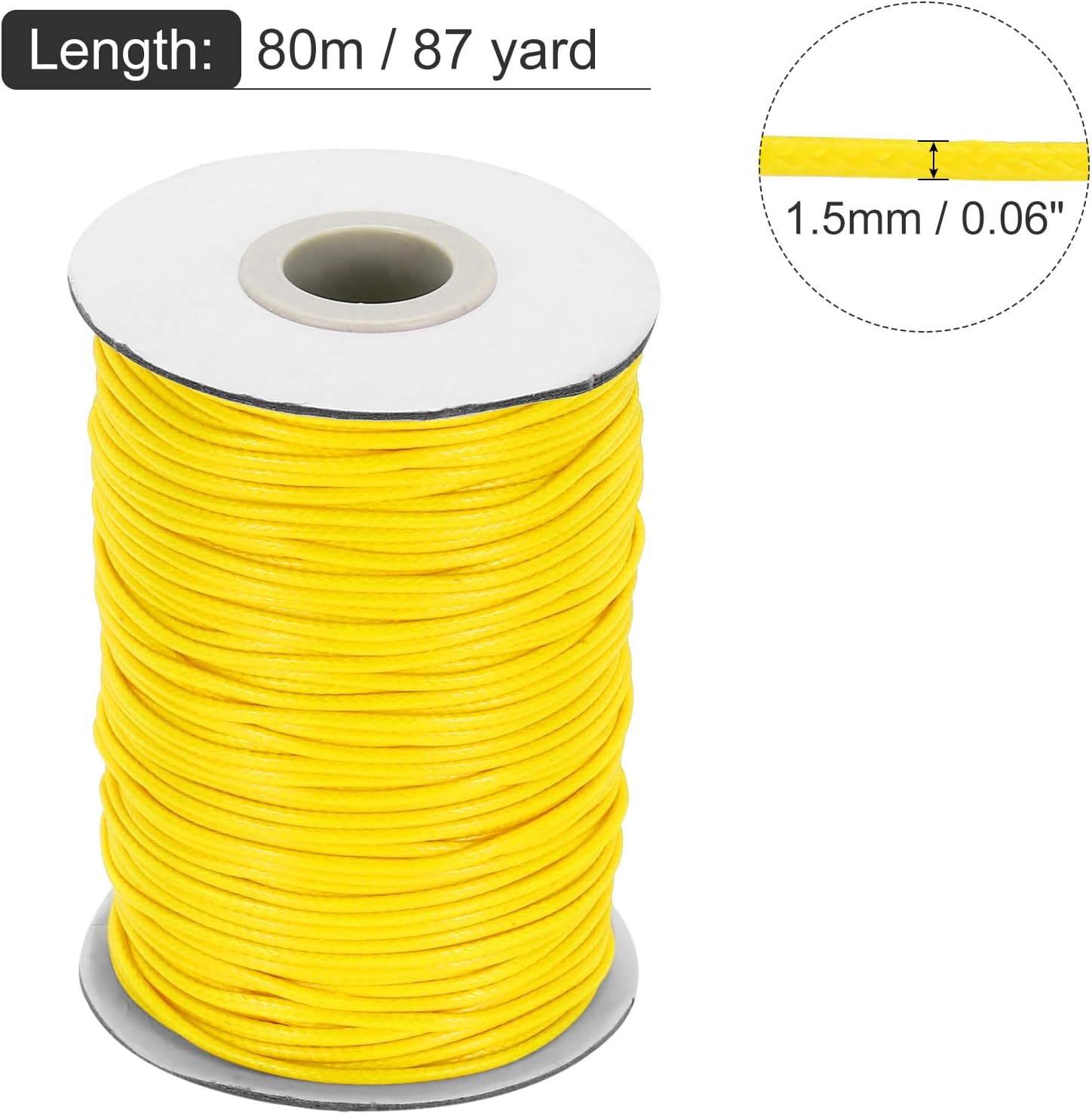 MECCANIXITY Waxed Cord 1.5mm Waxed Thread 87 Yard Wax String Leather Cord for Bracelet Making, Necklaces, Beading, Jewelry Making and DIY Crafts(Golden Yellow)