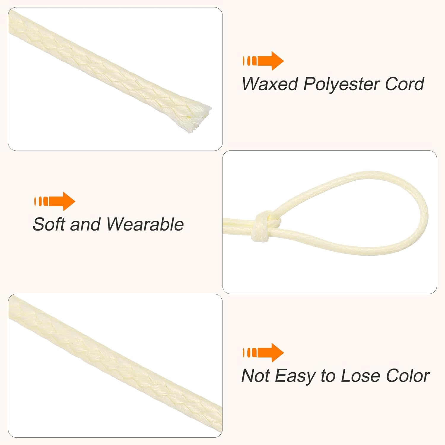 MECCANIXITY Waxed Cord 1.5mm Waxed Thread 87 Yard Wax String Leather Cord for Bracelet Making, Necklaces, Beading, Jewelry Making and DIY Crafts(Beige)