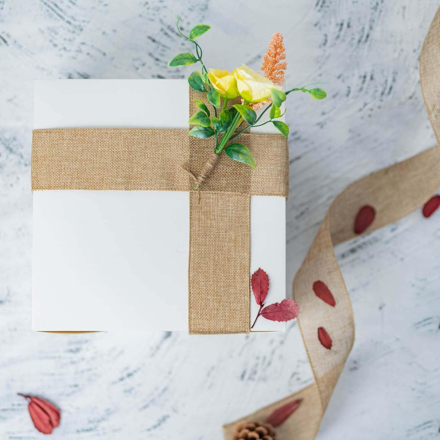 Burlap Ribbon Wired, Farmhouse Rustic Ribbon for Gifts Wrapping DIY Crafts Floral Bows Wreath Making Party Supplies Holiday Home Decoration, 2.5 Inch x 10 Yards