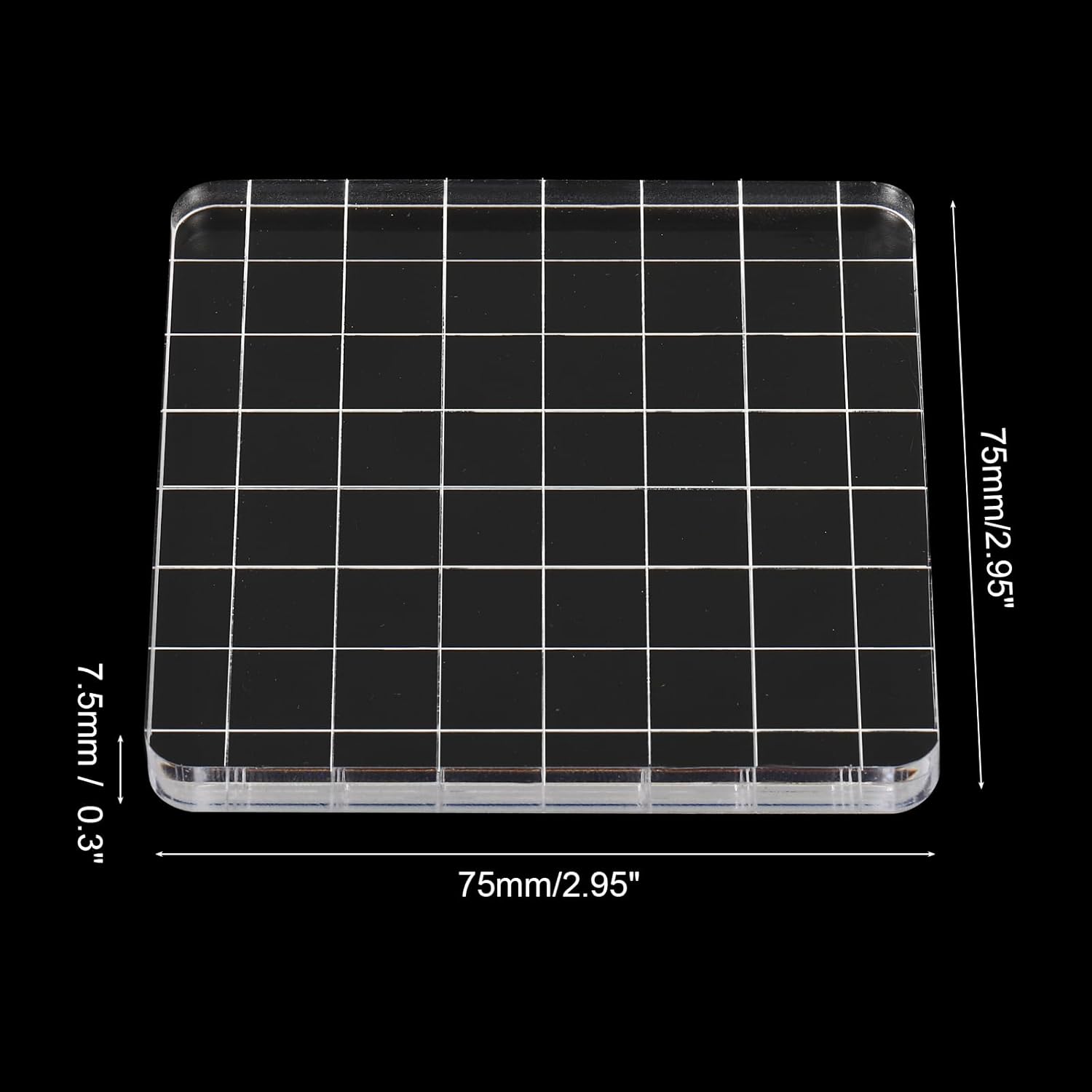 - Color: Transparent; Material: Acrylic; Size: 75 x 75 x 7.5mm / 3 x 3 x 0.3 inch(L*W*H); Packing List: 6 x Acrylic Blocks for Stamps