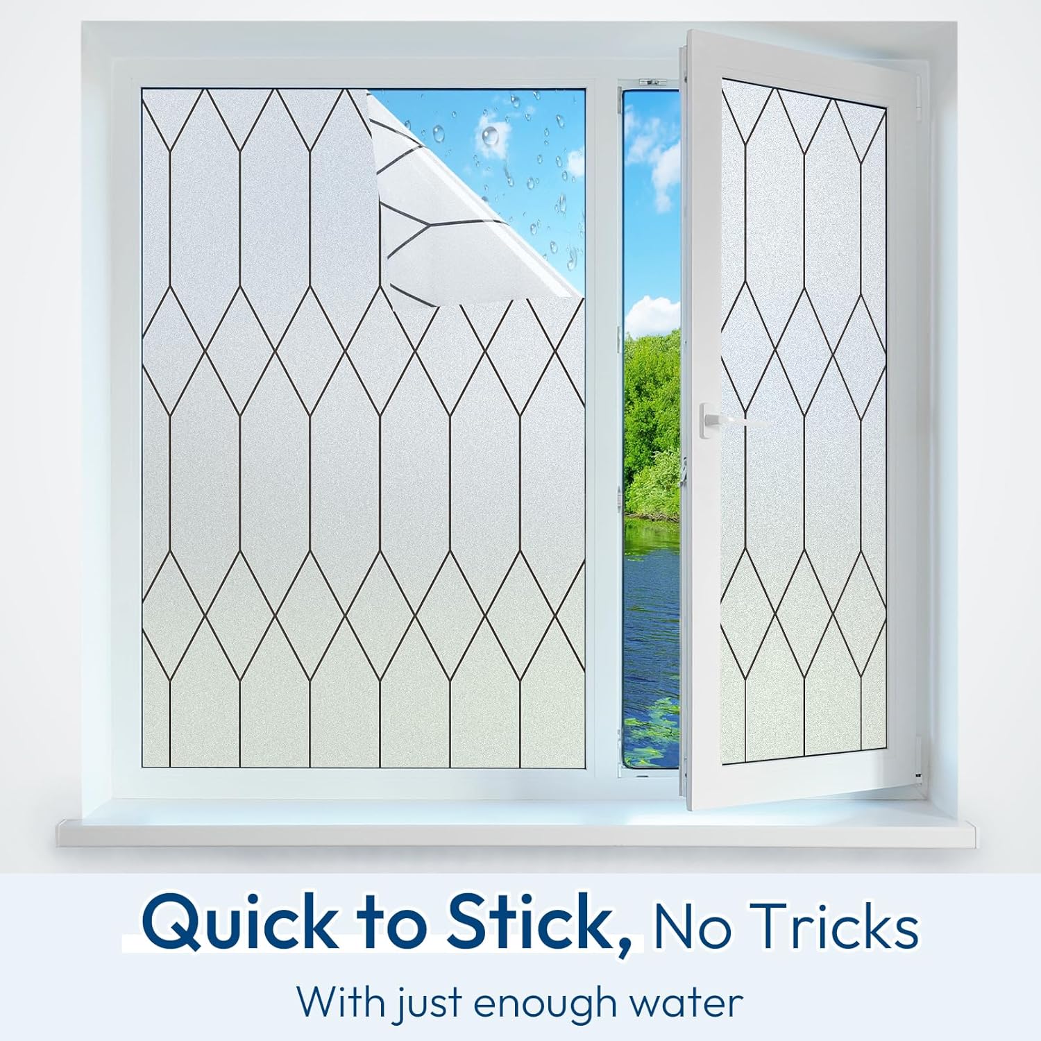 - Peel, Stick, Done: Easy to install in minutes—no glue needed! Install with water, removes cleanly, the window privacy film is ideal for renters or quick home upgrades