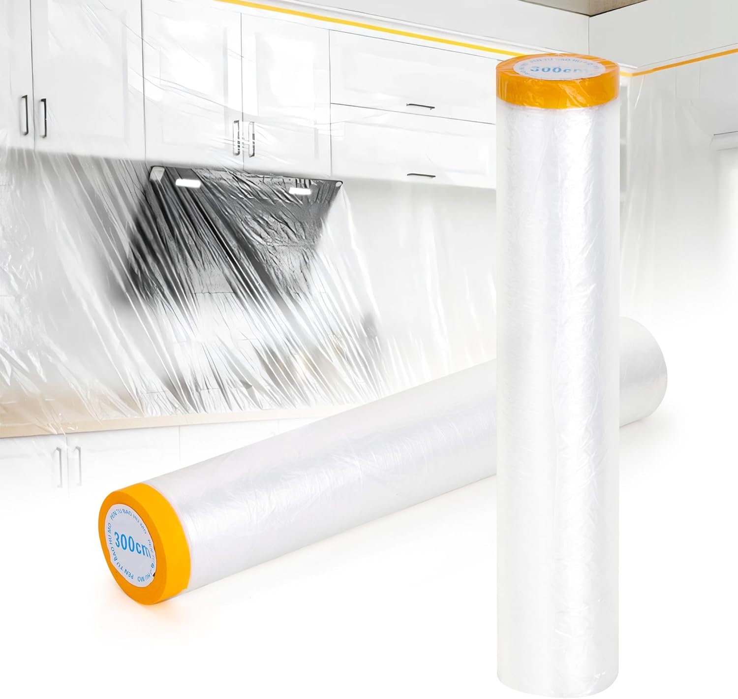 - Easy to Use : Our Pre-Taped Masking Film use Folding Design Easy to Unfold and Convenient to use, you just need to unroll the roll of masking film, put the tape side firmly in the right place, then cut it with scissors or tear it by hand, the plastic film will be electrostatically adsorbed and attached to the surface of the object.