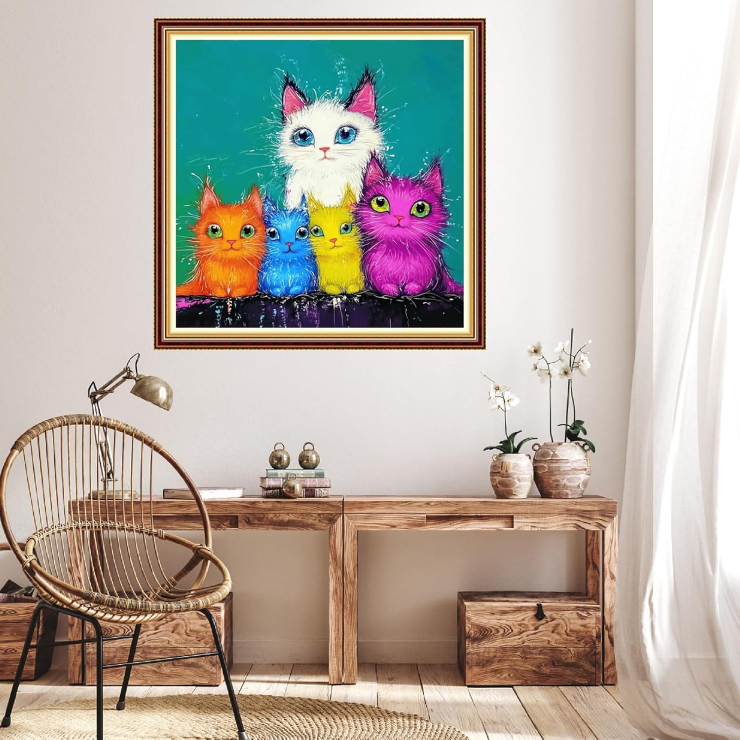 Hopeart Stamped Cross Stitch Kits for Beginner Embroidery Kits for Beginners Adults DIY 11CT Cross Stitch Patterns Needlepoint Kits Crossstitching Kits-A Family of Colorful Cats 18x18 inch
