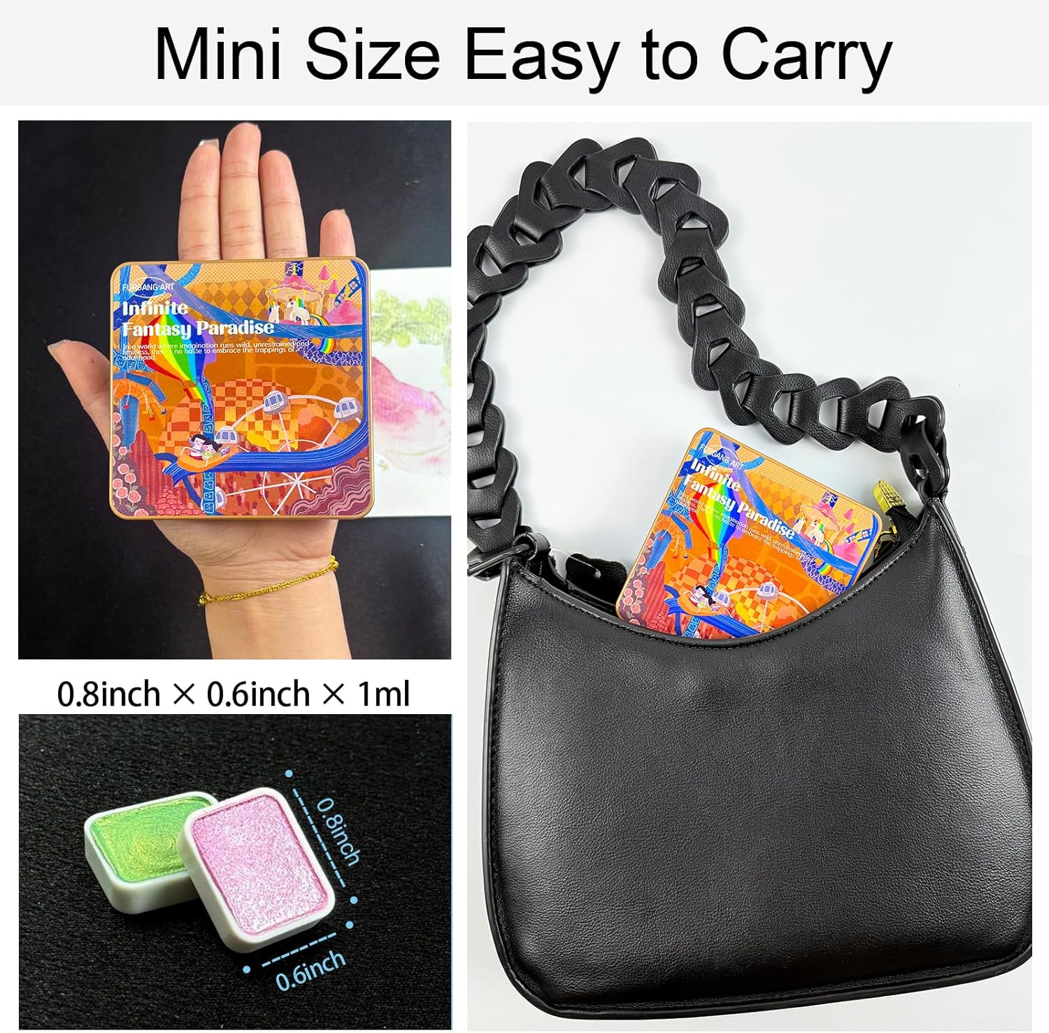 - ăMulti-Purpose PaintăShimmer watercolor paint set dries quickly and will not fall off after drying, stays on most surfaces extremely well and making the artwork shine forever. It can be used to color clay, do nail art, make prettr cards, beautify decorations, and more.