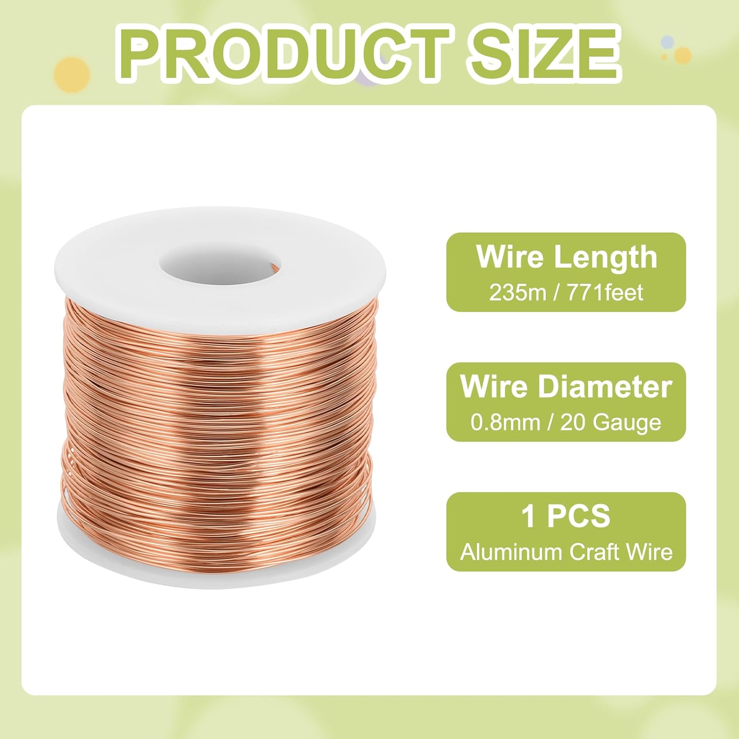 - Package contains 1pcs x Aluminum Craft Wire, wire diameter: 20 Gauge (0.8mm), wire length: 771 Feet (235m)