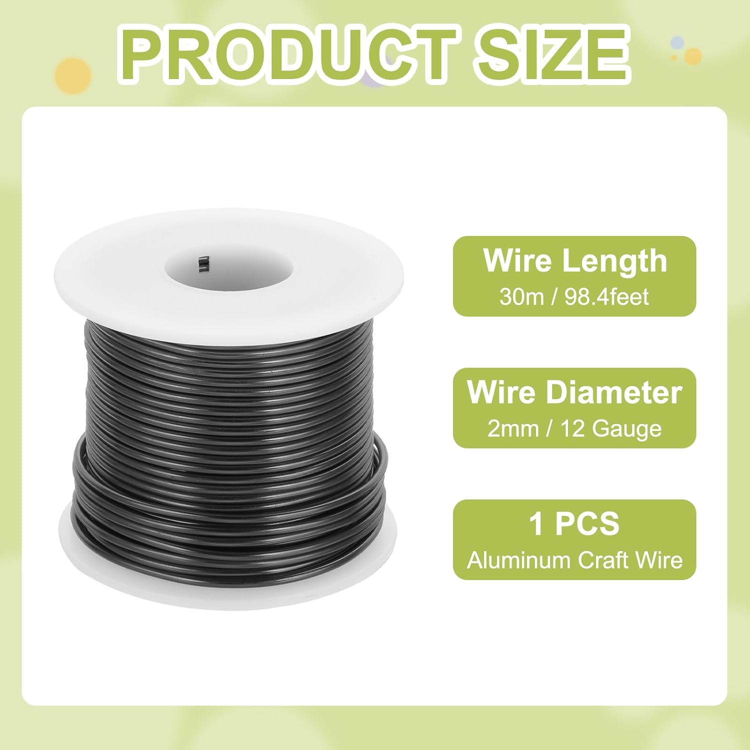 - Package contains 1pcs x Aluminum Craft Wire, wire diameter: 12 Gauge (2mm), wire length: 98.4 Feet (30m)