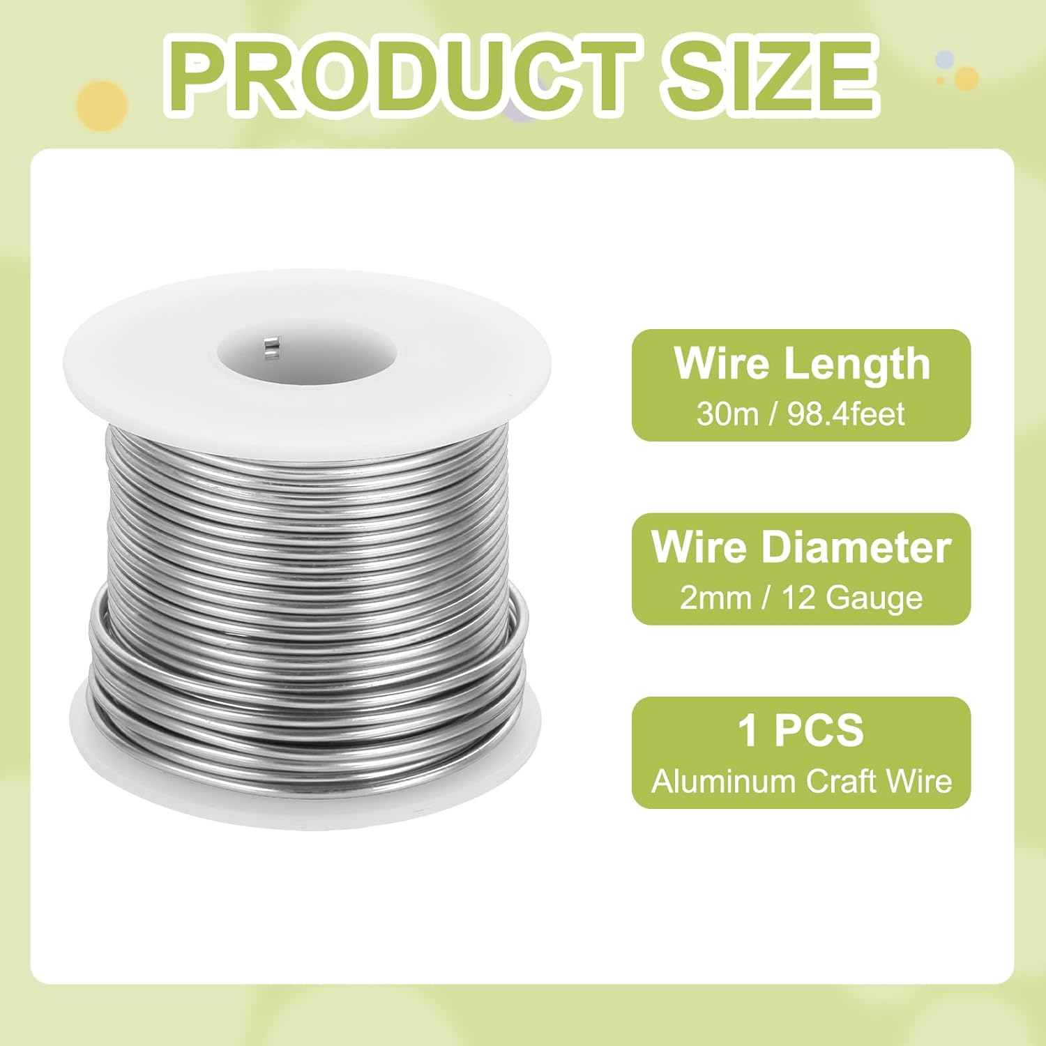 - Package contains 1pcs x Aluminum Craft Wire, wire diameter: 12 Gauge (2mm), wire length: 98.4 Feet (30m)