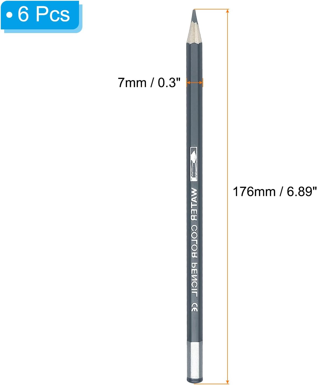 - Specification: Size: 176x7mm/6.89x0.3inch(L*W); Material: Wood; Color: Grey; Packing List: 6Pcs x Colored Pencil