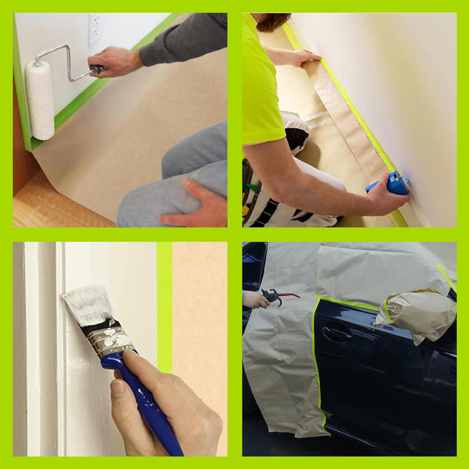 - 【Easy to Use & Convenient Size】Each roll measures 12 inch x 50 feet, lightweight and easy to tear by hand or cut with scissors. Simply unroll, stick, and cover – saves time and effort on masking. Package includes 3 rolls, enough for various home renovation and automotive projects.
