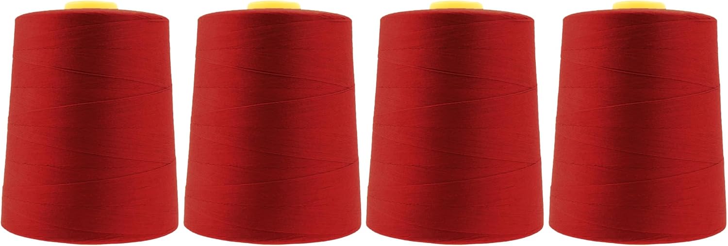 Mandala Crafts 4 Pack of Serger Threads Cones Spools - 20S/2 24000 Yards Polyester Brick Red Threads for Sergers Machine and Overlock Quilting Sewing Machine