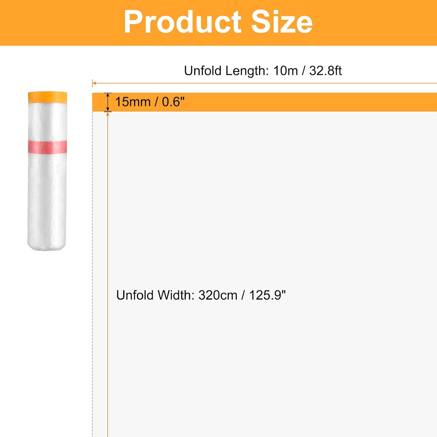 HARFINGTON Pre-Taped Masking Film 126" x32.8ft Double Adhesive Tape and Drape Painters Plastic Drop Cloth Film with Tape Plastic Sheeting for Automotive Painting Covering
