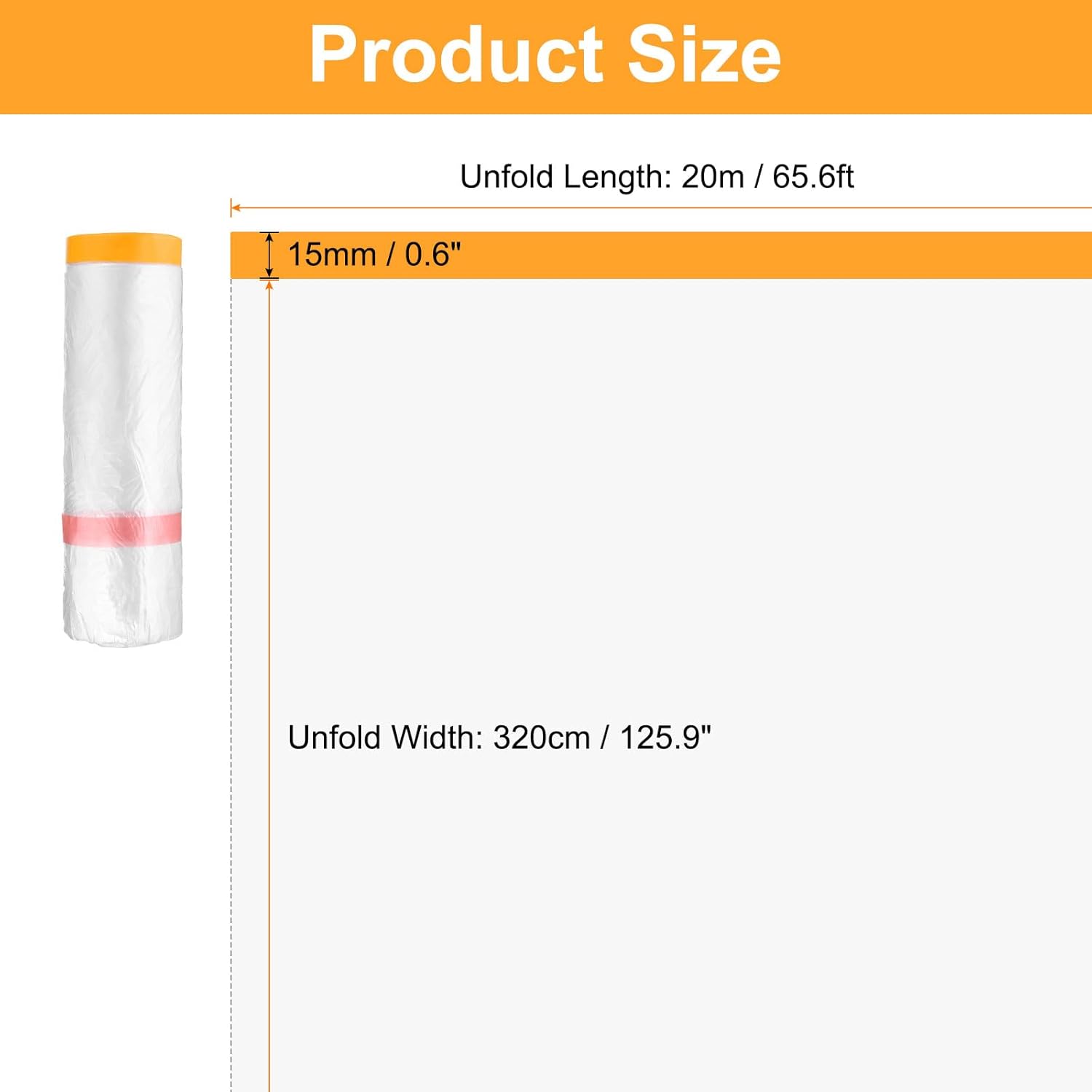 - Size - Total Size (unfold): 20m x 320cm / 32.8 ft x 206 in (L*W), Tape Width: 15mm / 0.6"