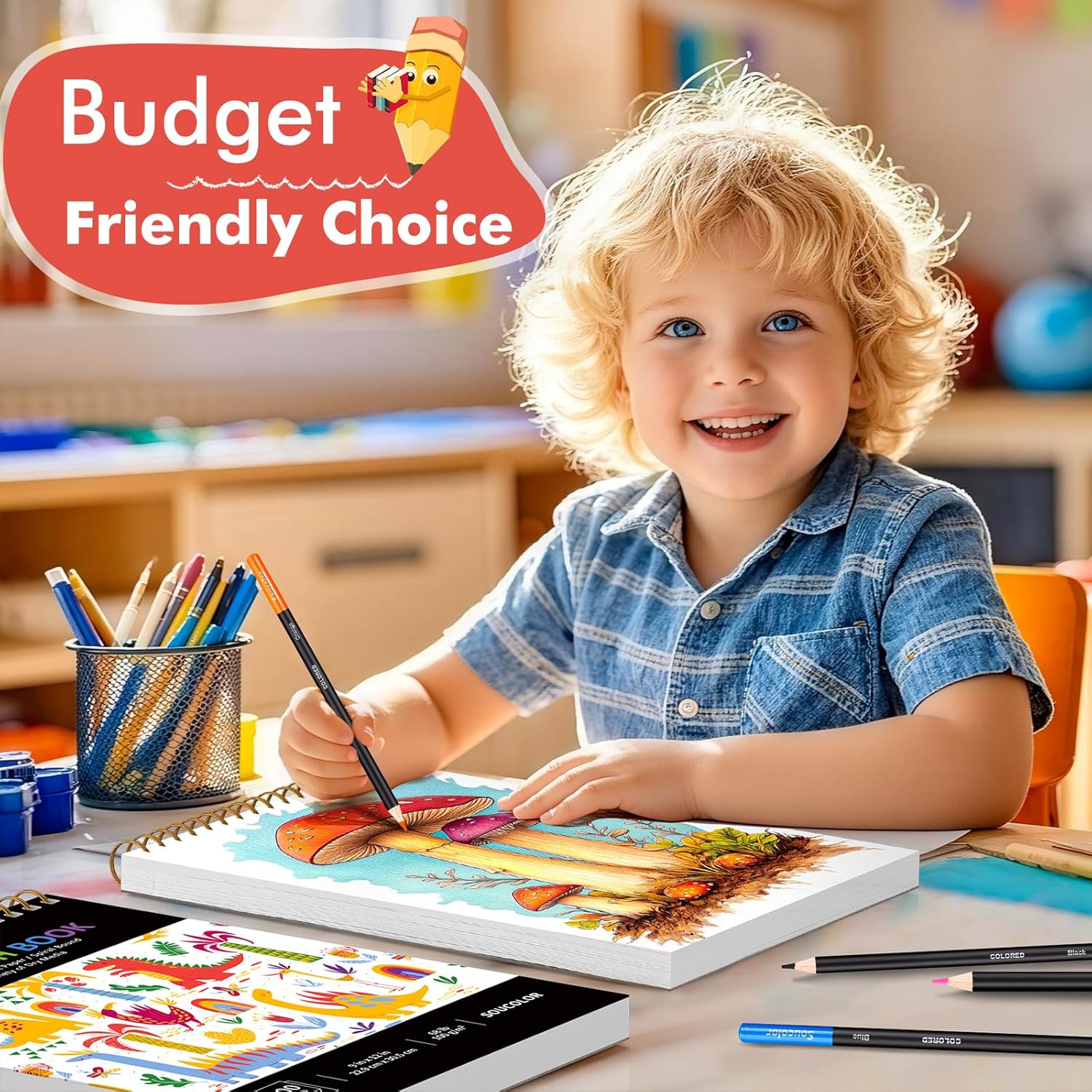 - 5. Trusted Quality & Budget-Friendly -- SOUCOLOR’s sketchbook offers premium paper that resists wrinkles and tears. With 100 sheets, it’s an economical choice for classrooms, workshops, or home use. Unleash creativity with this top-rated 9x12 drawing pad!