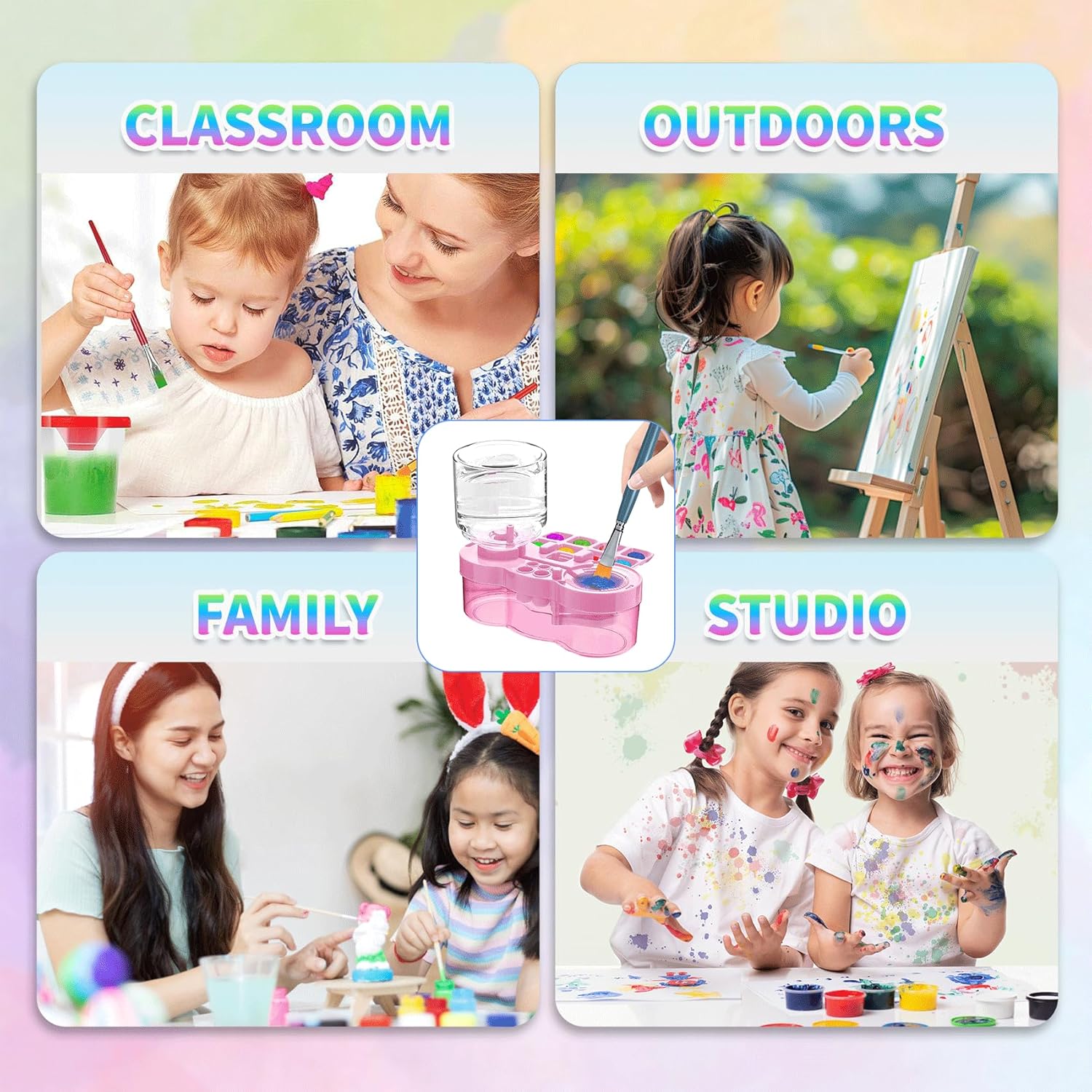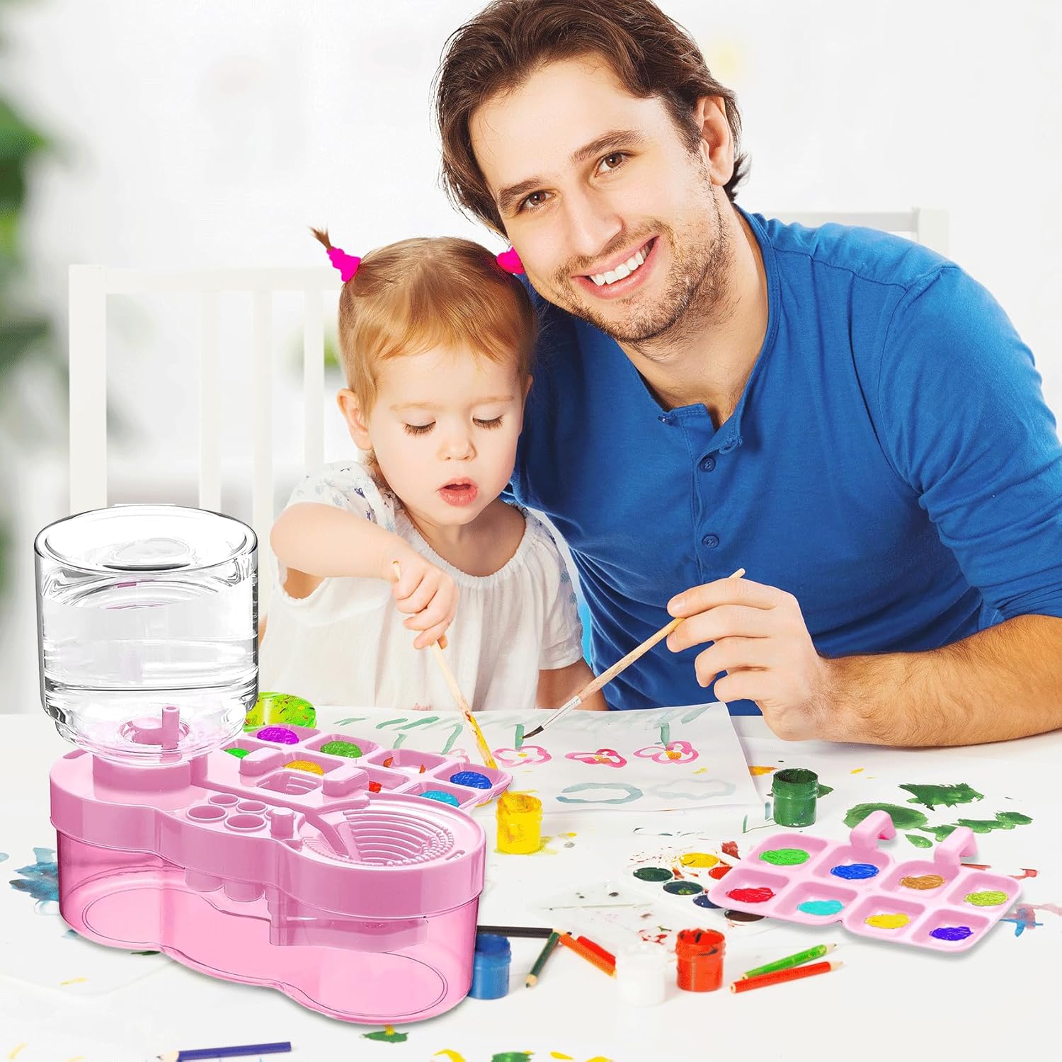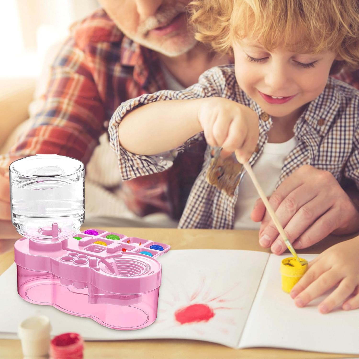 2025 Upgraded Paint Brush Cleaner Tool – All-in-One Paint Brush Washer, Rinse Cup, Holder, and Palette for Artists Beginners | Ideal Art Supplies for Watercolor & Acrylic Painting(Pink)