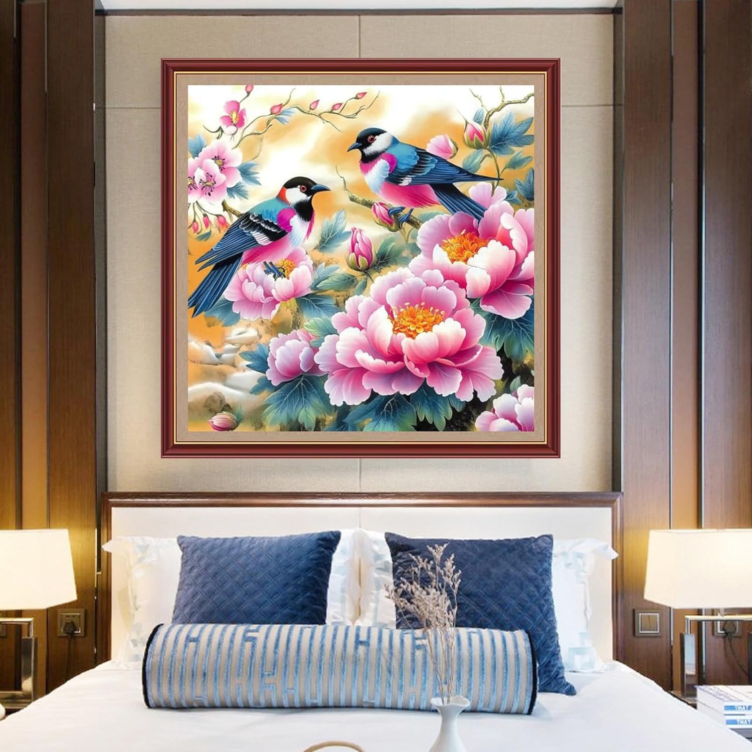 DMCXART Counted Cross Stitch Kits for Adults Needlepoint Kits Unprinted Cross Stitching Embroidery Kit 11CT Cross Stitch Supplies-Couple Bird Flowers 18x18 inch