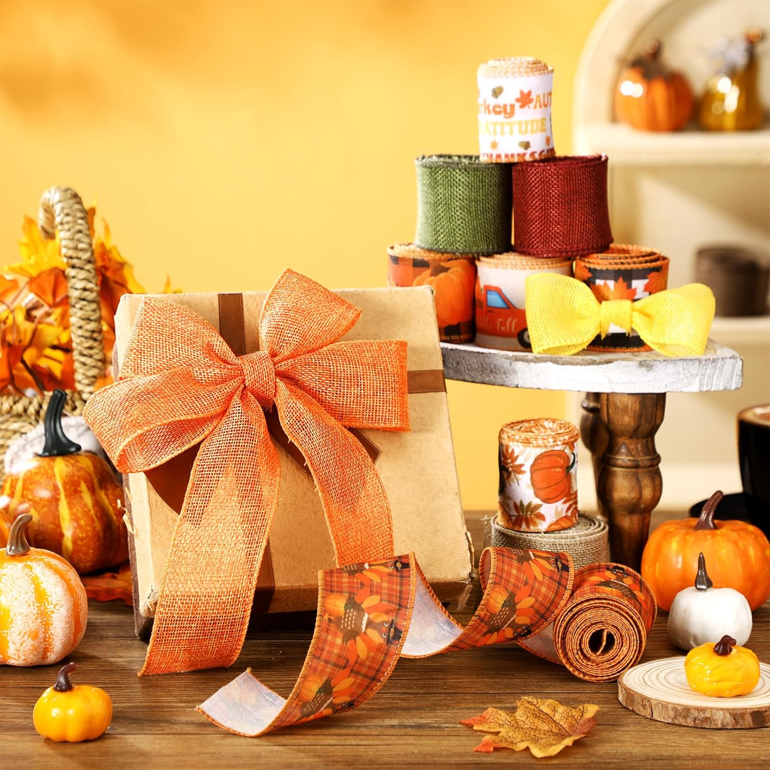 - Versatile DIY Compliant: unleash your creativity and innovativeness with our ribbons; Ideal for DIY projects, the fall ribbon allows you to decorate a variety of arts and crafts, such as packaging gift boxes, decorative garlands, flowers, vases, cakes, home furnishings, DIY crafts and more