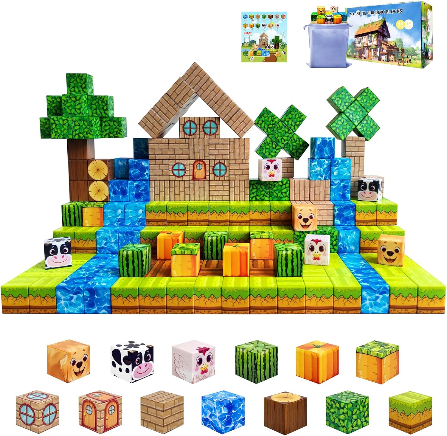Magnetic Blocks Building Toys for Kids: Magnetic Blocks for Kids Ages 3-4, 8-12, 1" Magnet Cubes STEM Toys for Boys & Girls,Christmas Birthday Gifts for Toddler Ages 3+, 48PCS Blocks Farm Theme