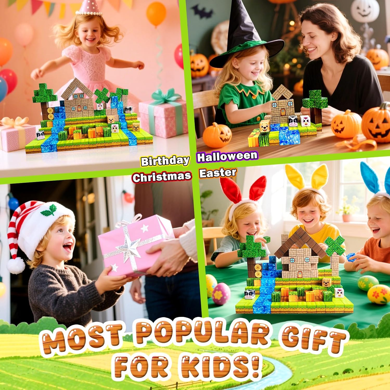 - GROWING GIFTS FROM TODDLER TO SCHOOL AGE: Whether it's a birthday gift, Christmas gift or kindergarten graduation gift, this magnetic toy that combines entertainment, education and durability will make your child squeal at the moment of opening the box, and show parents the true “growing value”. Our magnetic building block set not only comes with a beautiful gift box also comes with a drawstring storage bag, easy to store and carry, camping, classes, traveling can be played at any time. Our magnetic blocks for kids ages 1-3 4-8 8-12