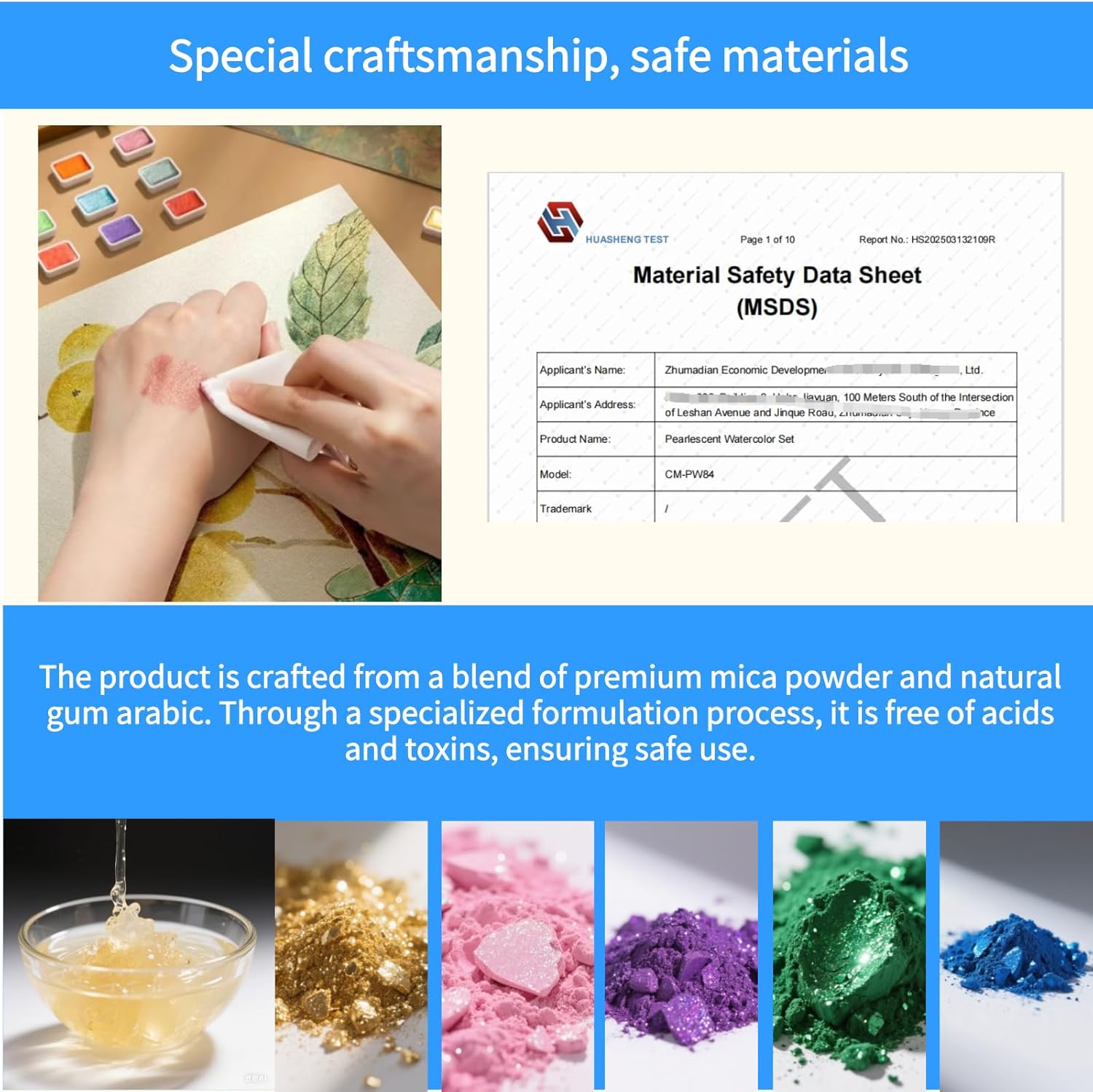 - FINE CRAFTSMANSHIP: The watercolor pigments are repeatedly ground many times to make the pigment powder finer. When dissolved, the painting strokes are smoother and less likely to clump, and they are not easy to flake and fade after drying, so that your works will always shine