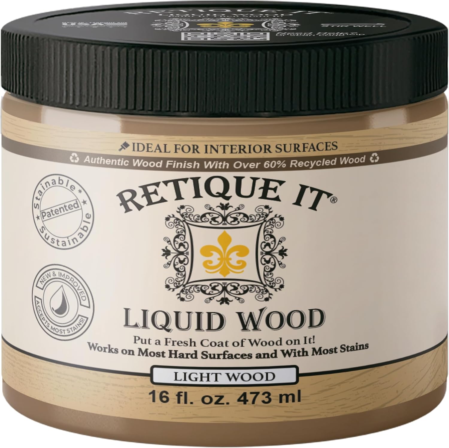 Retique It New and Improved Formula Liquid Wood Coatings - Stainable Primer - Paint It then Stain it (Light Wood, Medium)