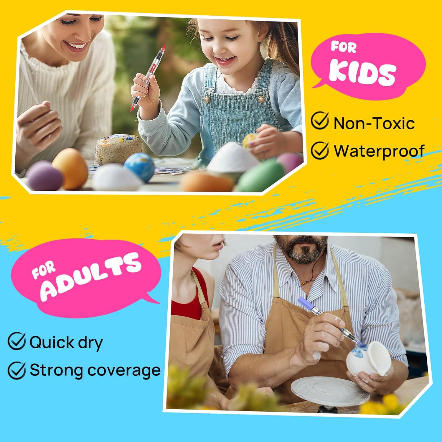 - 【Non-toxic and waterproof】 Certified by ASTM D4236 and EN71, art supplies for adults kids. Once dry, the vibrant colors are waterproof and fade-resistant