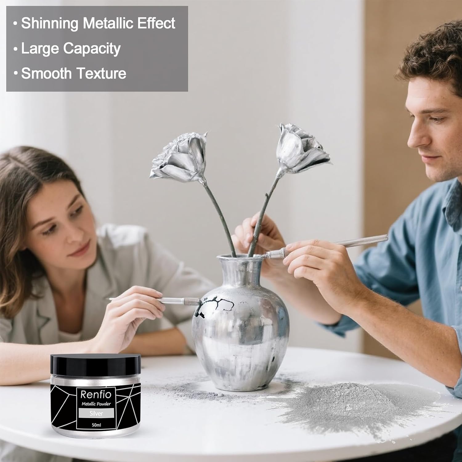 - ✅Product Configuration - This metallic pigment include 50ml fine metal powder in jar. Gold pigment powder,Antique Golden epoxy pigment powder and silver metallic pigment dye are available for selection. This metallic pigment powder also comes with cotton swabs for easy application on various surfaces, like molds, canvases, nails, resin crafts, glass, paper and Ceramics.