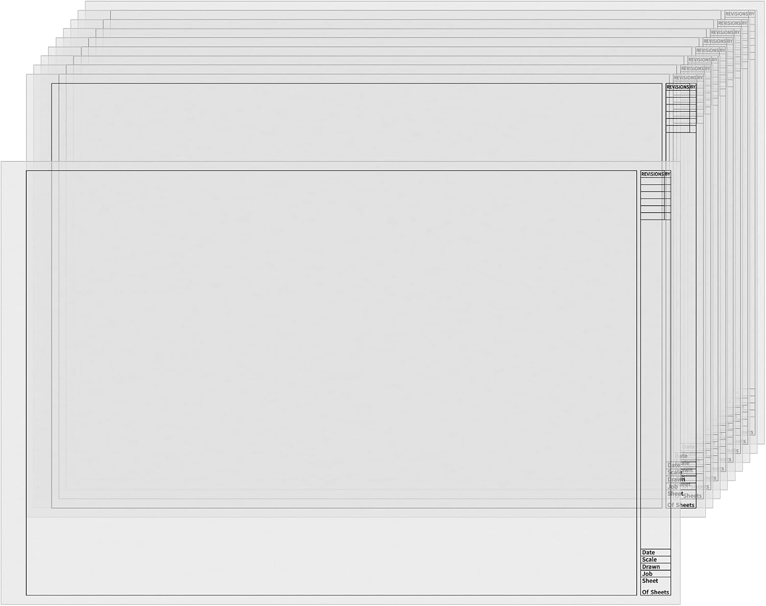 Gilprop 10 Sheets Architectural Vellum Paper 24" x 36" Drafting Vellum Tracing Sheets White Translucent Drafting Paper Rag with Border and Title Block for Drawing Sketching Architecture Building