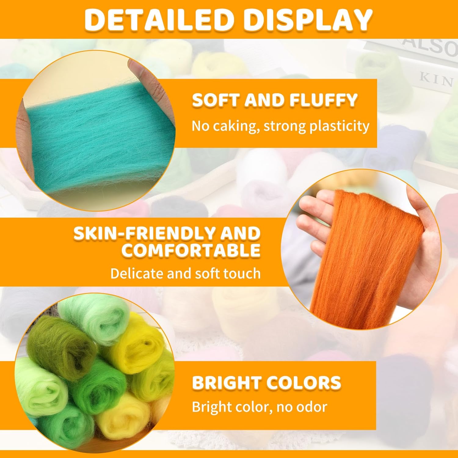 - 10.5 oz/ 300g Felting Wool: You will receive a total of 10.5 oz (300g) wool roving. A large amount of colorful soft wool roving would allow you to create different felting wool crafts according to your imagination