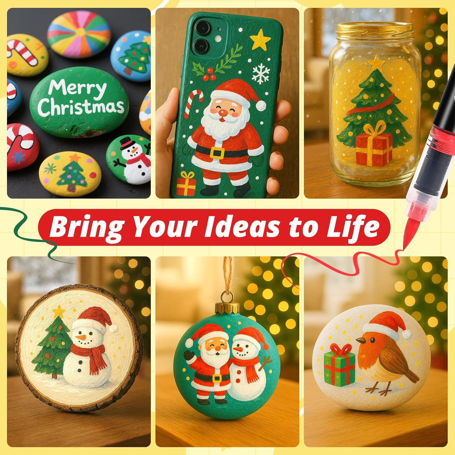 - 【Quick-Dry, Waterproof & Fade-Proof Ink】 These acrylic pens feature fast-drying ink with water and UV resistance, ensuring your artwork remains bold and vivid over time. The high-opacity formula provides excellent coverage, even on dark surfaces. Perfect for rock painting, outdoor crafts, or personalised holiday decorations.