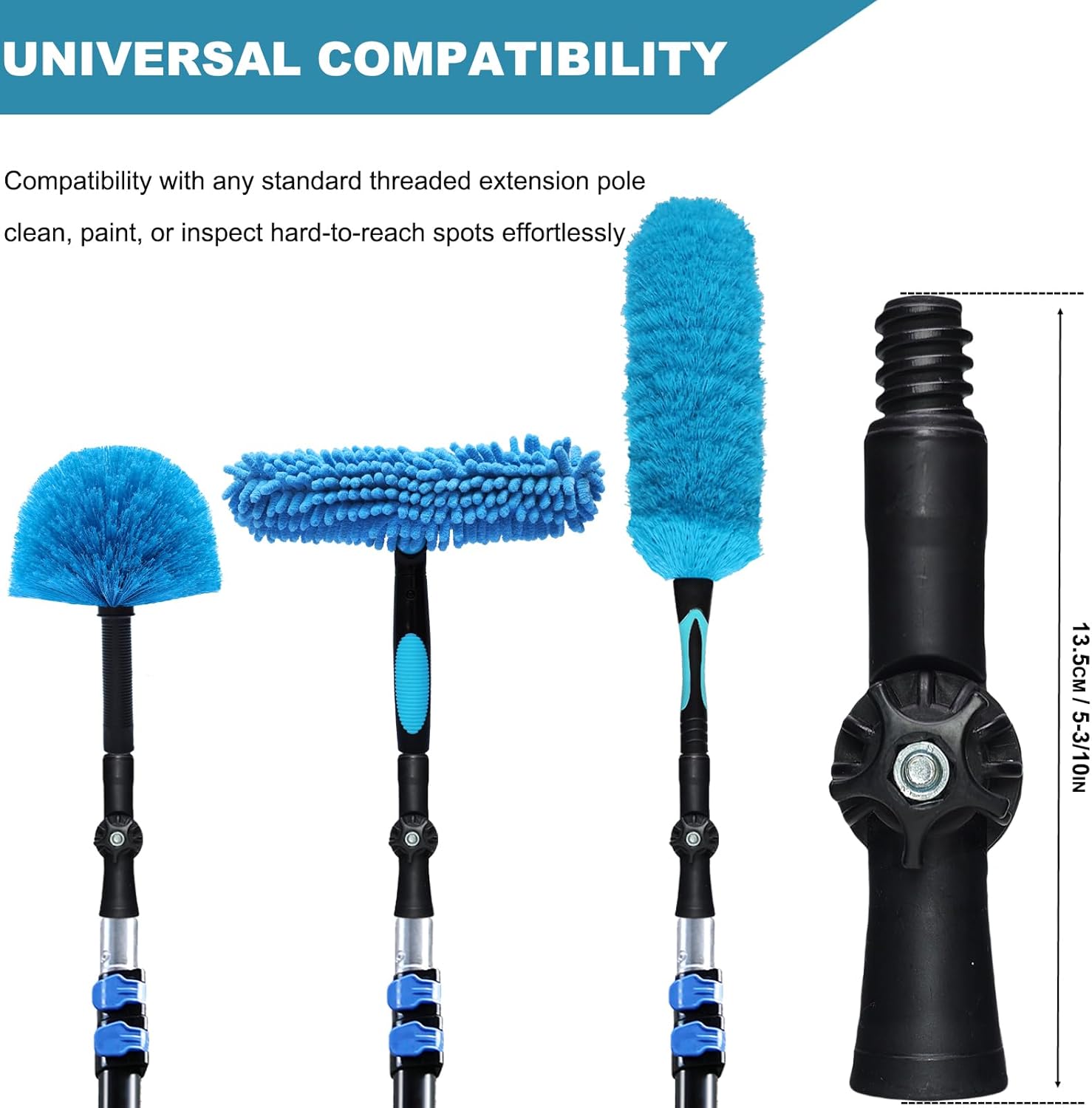 - ๐น Universal Compatibility with Threaded Poles & Attachments โ Works with any standard threaded extension pole, mop, or broom handle. Compatible with microfiber dusters, paint rollers, squeegees, pruning saws, and more for versatile indoor/outdoor use. (pole not included)