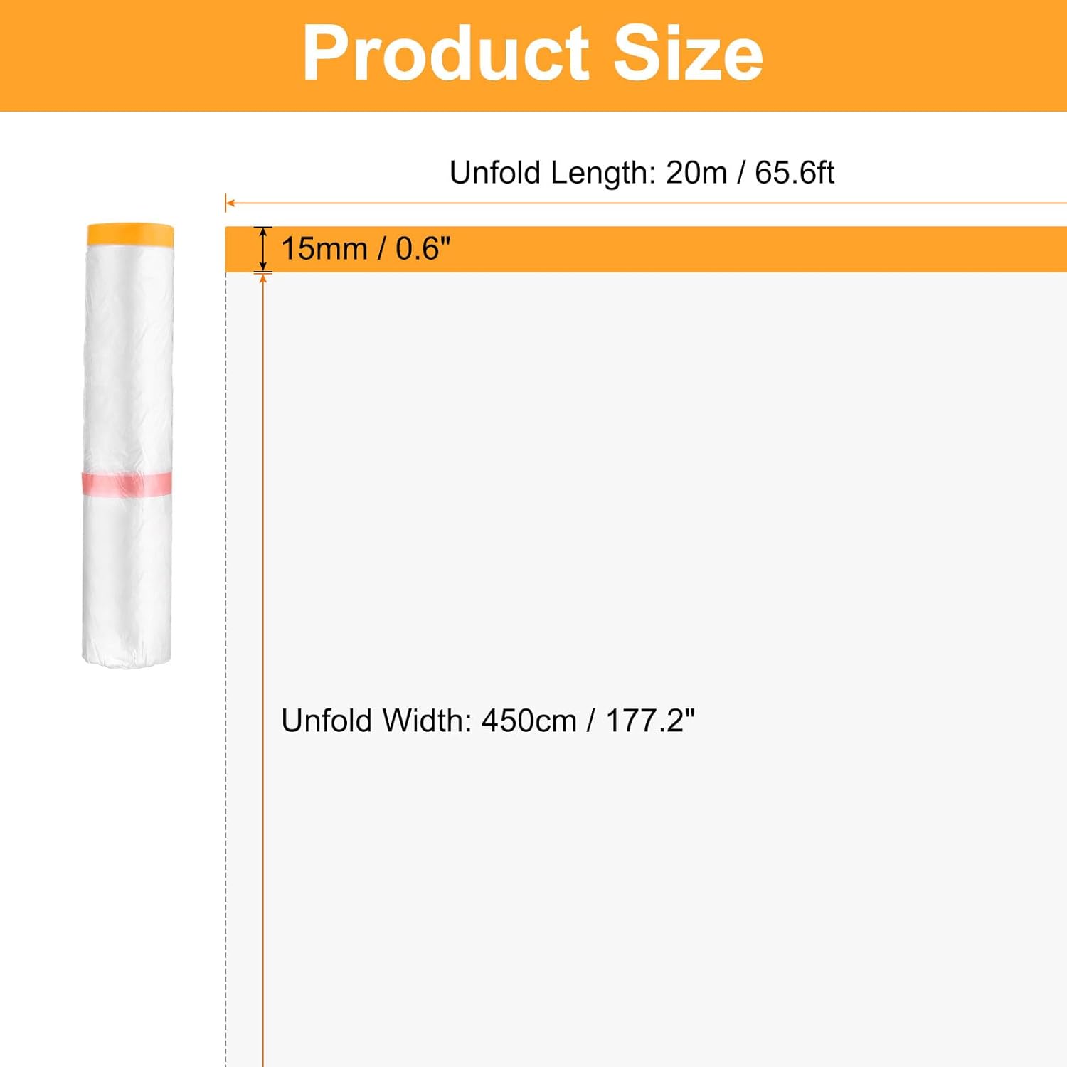 - Size - Total Size (unfold): 20m x 450cm / 32.8 ft x 177.2 in (L*W), Tape Width: 15mm / 0.6"