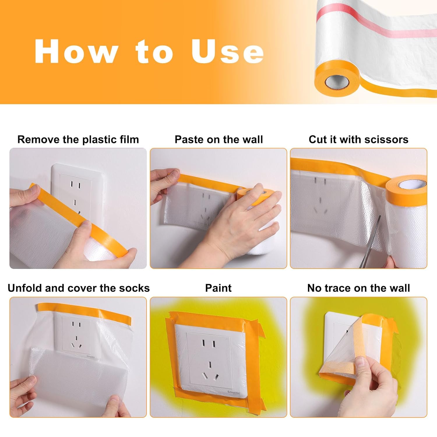 - Features - The painting plastic covering film is pre-taped, no additional tape tools or accessories are required, it can be firmly adhered to the surface, easy to use on walls, cabinets or cars. Double adhesive design on the top and bottom, easy to stick and firmly stick, full protection