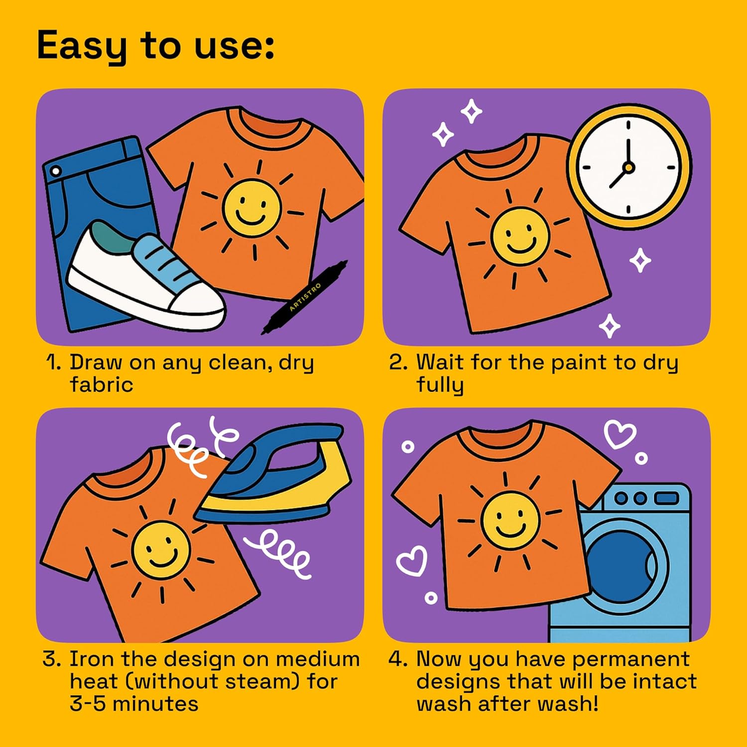 - Dual-Tip for Maximum Versatility: This 48-pack of Artistro fabric markers includes both a 1 mm fine tip for precision details and a flexible brush tip for bold strokes, shading, and filling larger areas. Perfect for all types of fabric artwork, from fine lines to expressive designs.