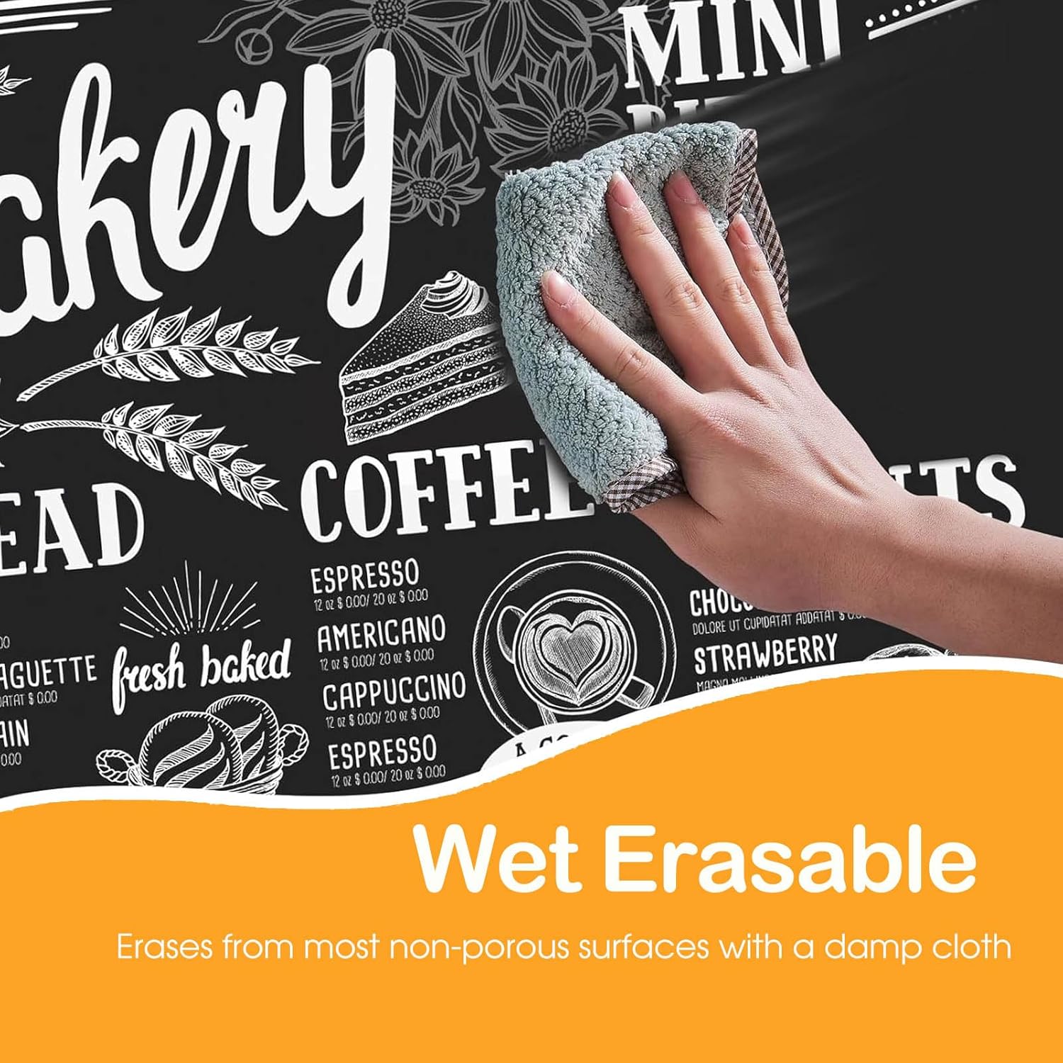 - Effortless Cleanup: Our water-based ink is washable and delivers smudge & dust free - flowing lines that go on smooth and quick dry within minutes. What makes using Liquid Chalk so unique is that you can wet wipe your sign writing art away with a damp cloth, or for more efficiency you can use the Rainbow Blackboard, Whiteboard and Glass Cleaner.Remember to cap the Wet erasable glass pen window marker after each use to prevent drying out.