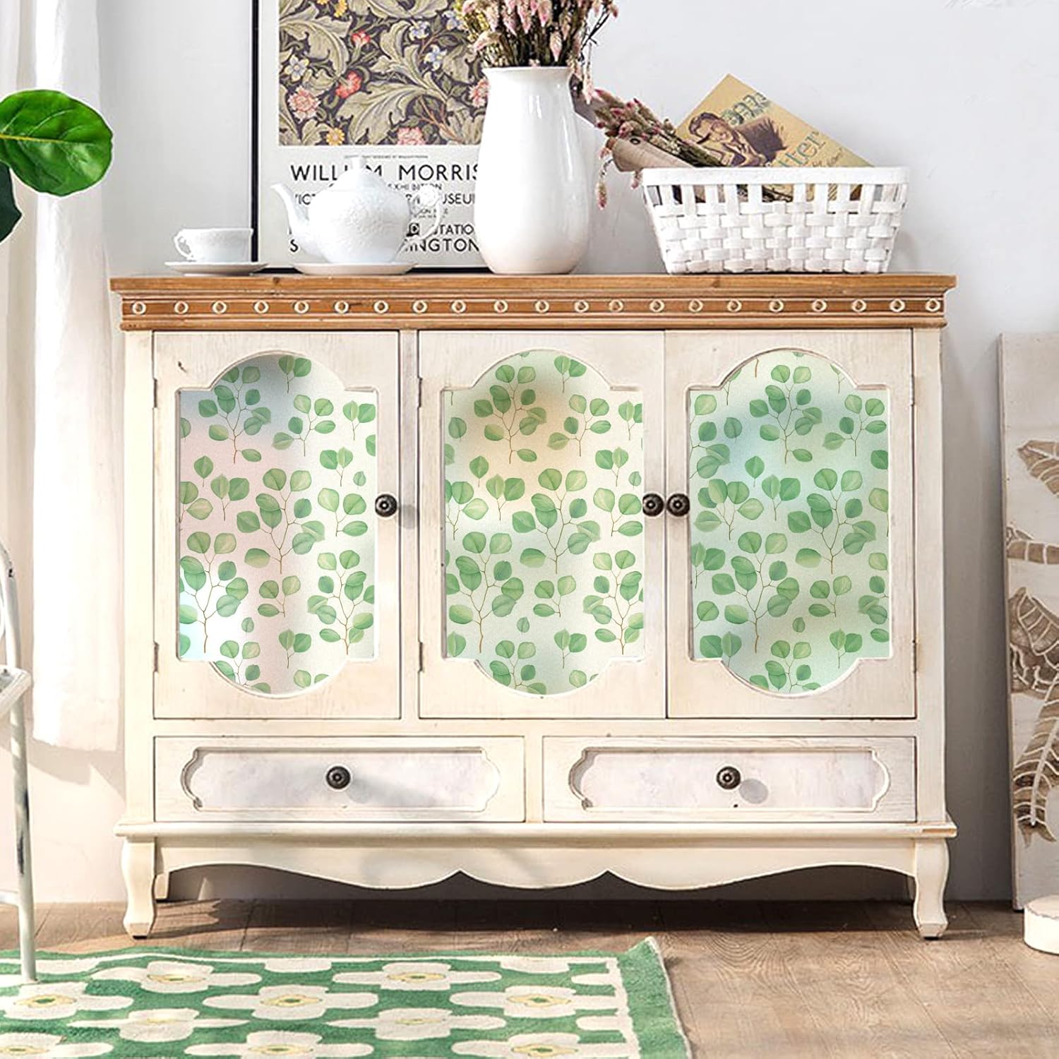 DKTIE Retro Leaves Pattern Two-Way Window Film Privacy Day and Night Window Privacy Film Decorative Stained Glass Window Clings for Birds (S222, 17.7" x 78.7")