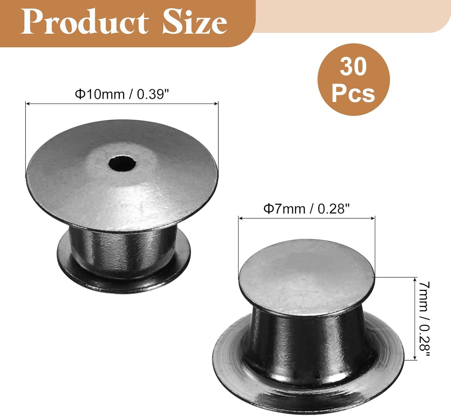 - [What You Get]: The package contains a total of 30pcs pin backs, the pin backs overall size 10 x 7 x 7 mm / 0.39 x 0.28 x 0.28 inch (Big Dia*Small Dia*H), which is enough to meet your diverse usage needs and bring you a wonderful usage experience
