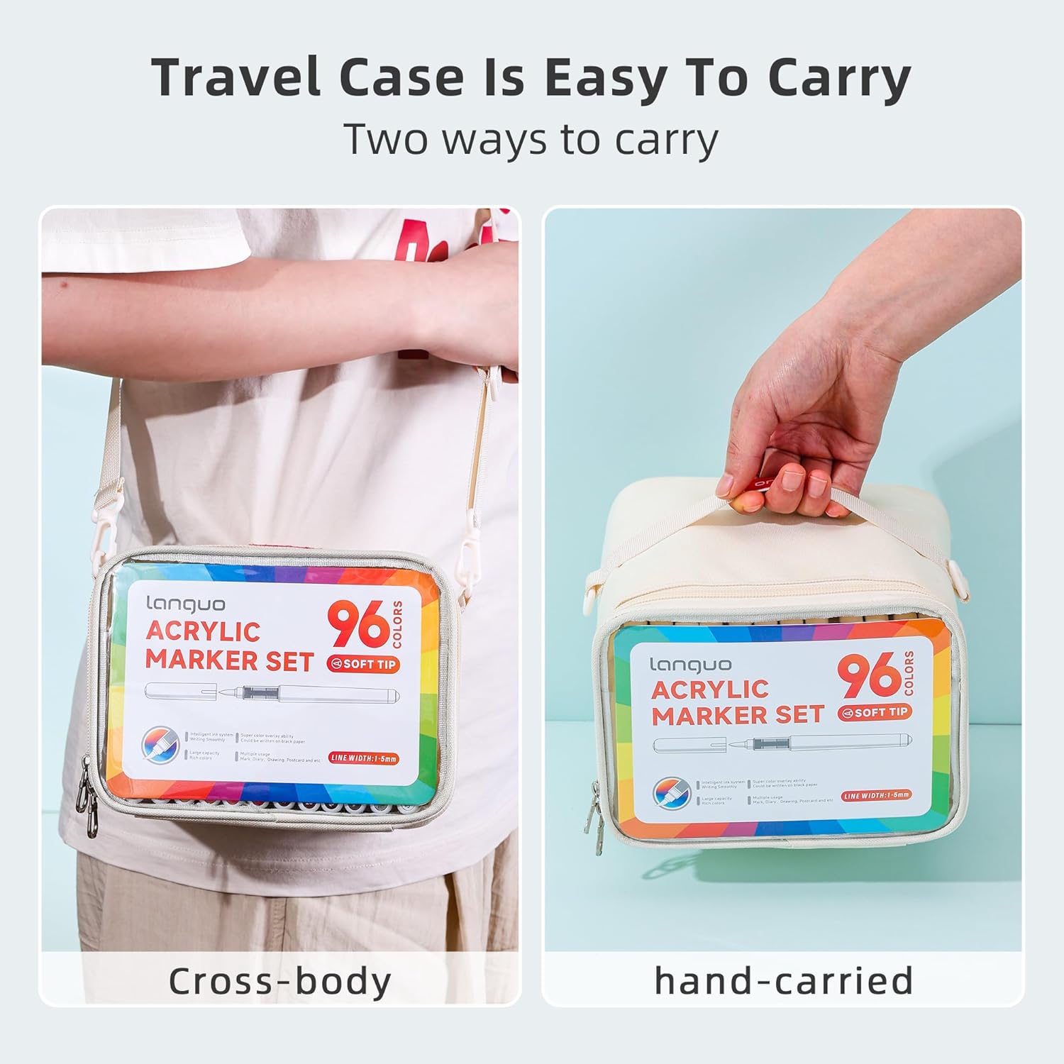 - Easy to Organize & Carry with Marker Bag: Keep your acrylic brush markers organized in the included portable marker bag—handheld or crossbody. Color-coded caps and a fillable color chart make color picking simple and fast