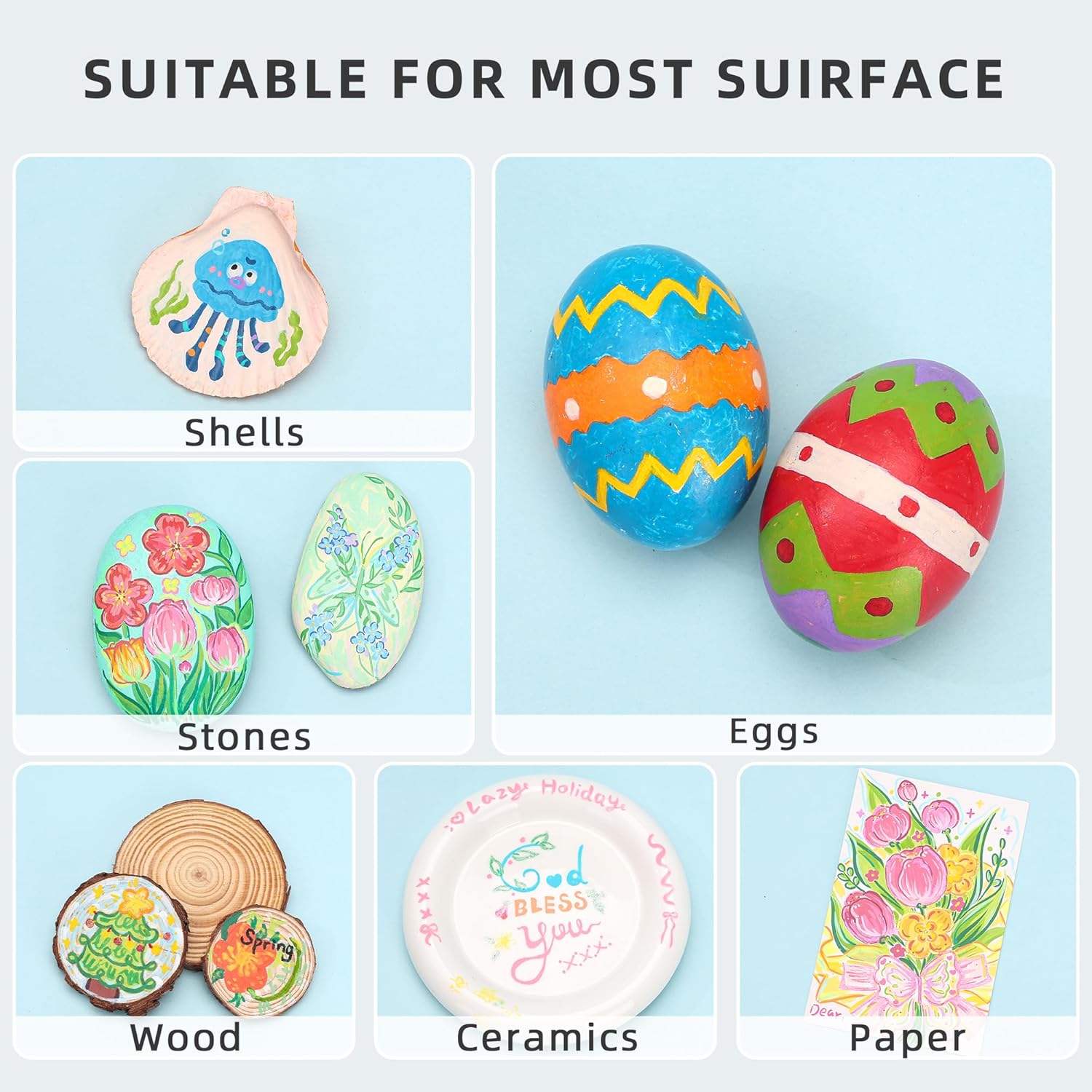 - Works on Most Surfaces, Bright & Long-Lasting: These acrylic paint pens work on canvas, wood, rocks, fabric, glass, and more. With strong coverage and fast-drying ink, they’re ideal paint markers for wood, rock painting, and DIY crafts