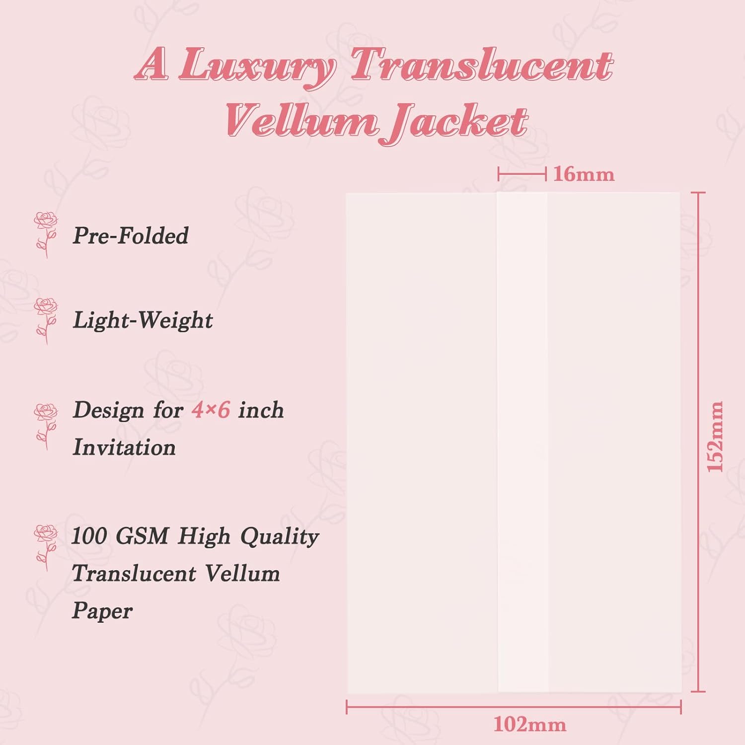 - VERSATILE: Add your wedding invitations to these stylish vellum jackets to impress your friends, family and colleagues before they arrive at your wedding,baby welcome parties, birthday parties, wedding receptions and other formal events.