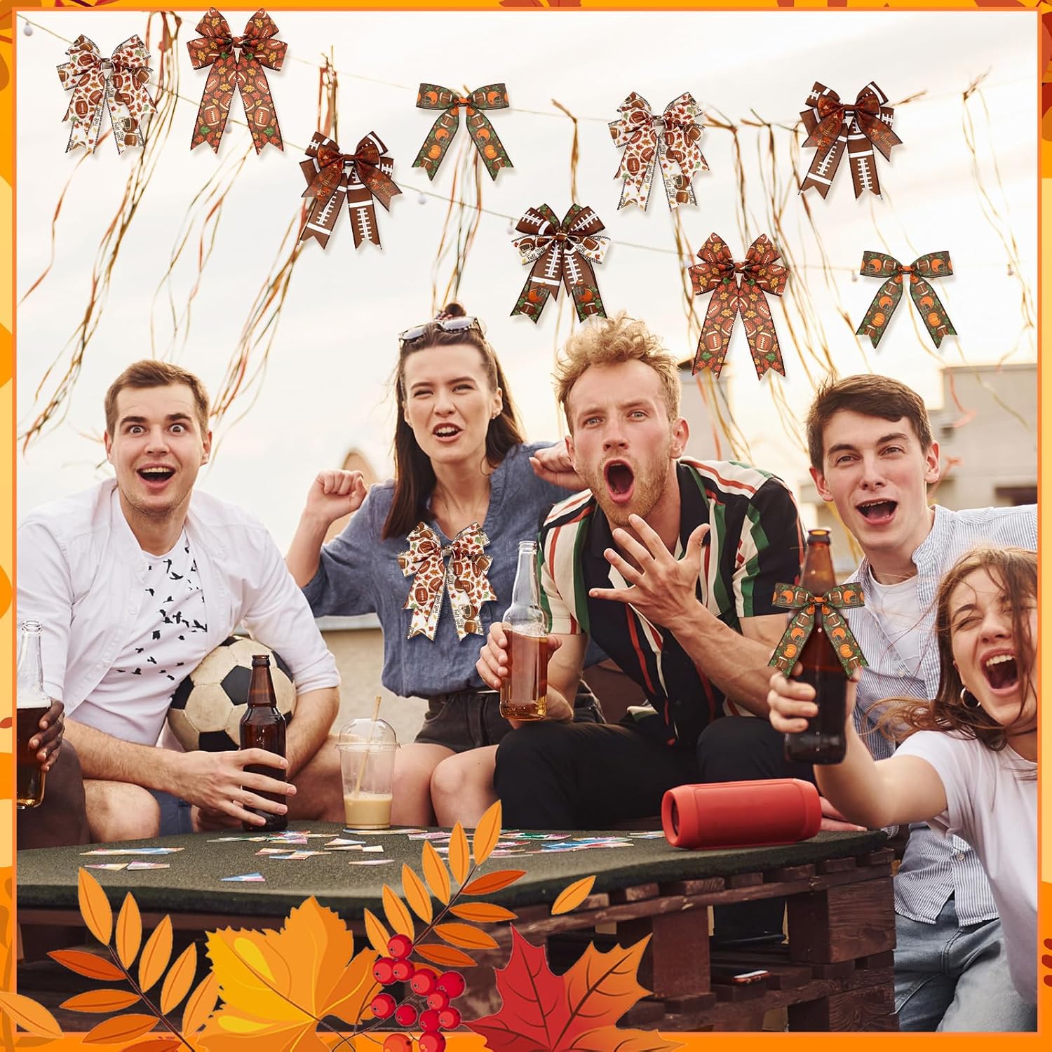 - Create an Fall Football Table Festive Spirit: our wired ribbon is the delicate accessory to elevate your fall football decorations; Whether you're adorning your front door, staircase, tables, stairs, railings, candles, lights, trees or even creating your own fall football inspired centerpieces, our ribbon will add a festive touch to many spaces