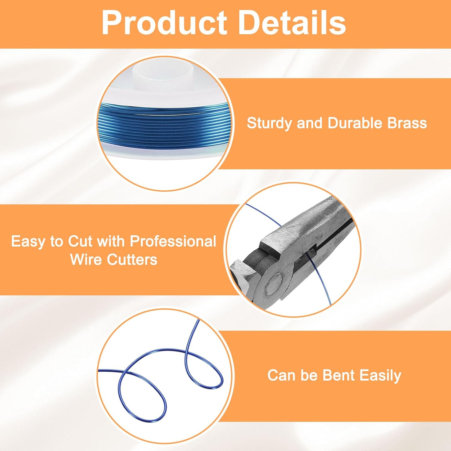 HARFINGTON 10ft Jewelry Wire, 22 Gauge (0.7mm) Brass Craft Soft Metal Tarnish Resistant Copper Beading Wire for Jewelry Making Supplies Crafting, Blue