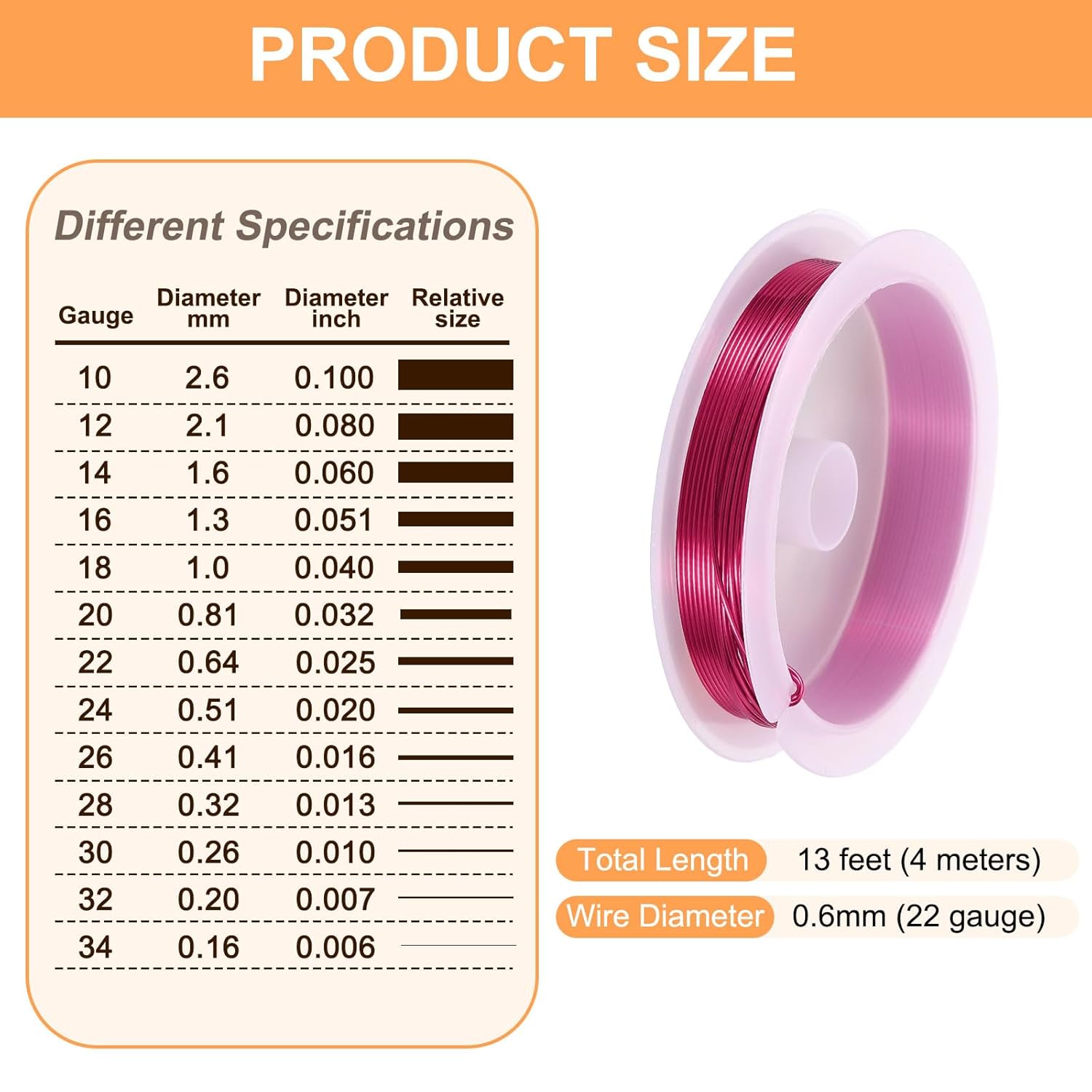 - Size - The diameter of the art wire is about 0.6mm (22 gauge) and 13 feet (4 meters) long. The art wire is suitable for jewelry making, beading, and jewelry repair.