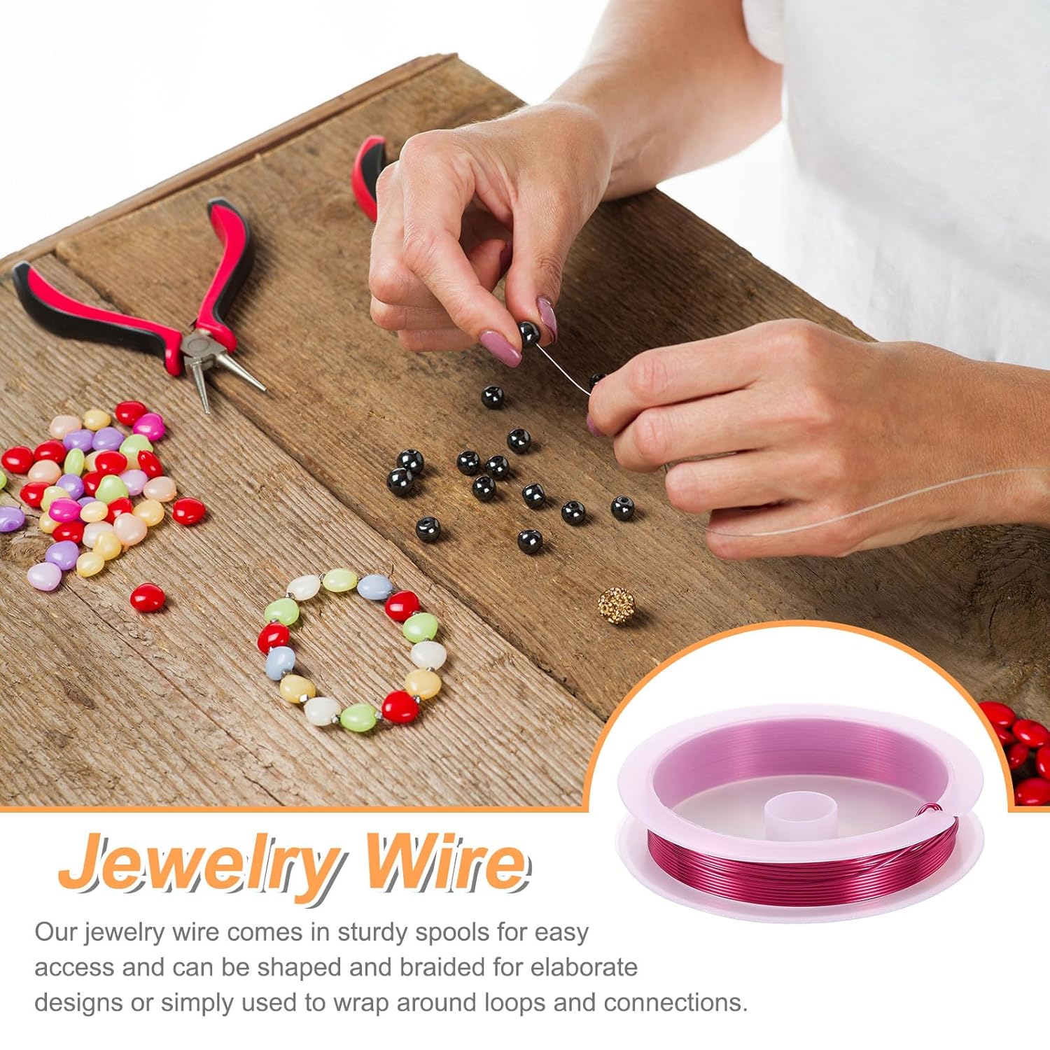 - Features - The jewelry wire is bendable and flexible, easy to use, and can be used with different types of beads, necklaces, bracelets, and other jewelry DIY projects. In addition, it is packaged in a sturdy spool, which is convenient to take out the metal craft wire and keep it neat and not messy.