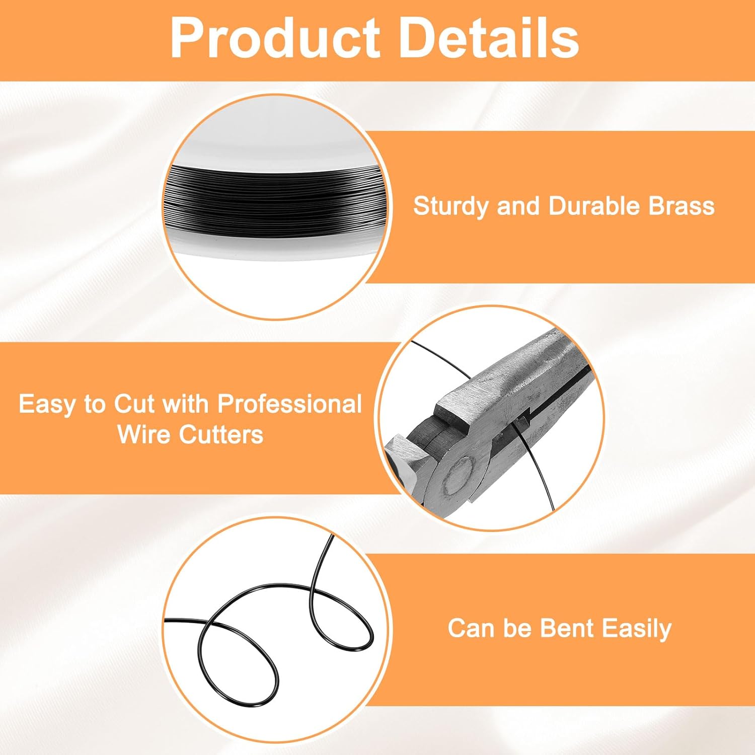 HARFINGTON 49ft Jewelry Wire, 28 Gauge (0.3mm) Brass Craft Soft Metal Tarnish Resistant Copper Beading Wire for Jewelry Making Supplies Crafting, Black
