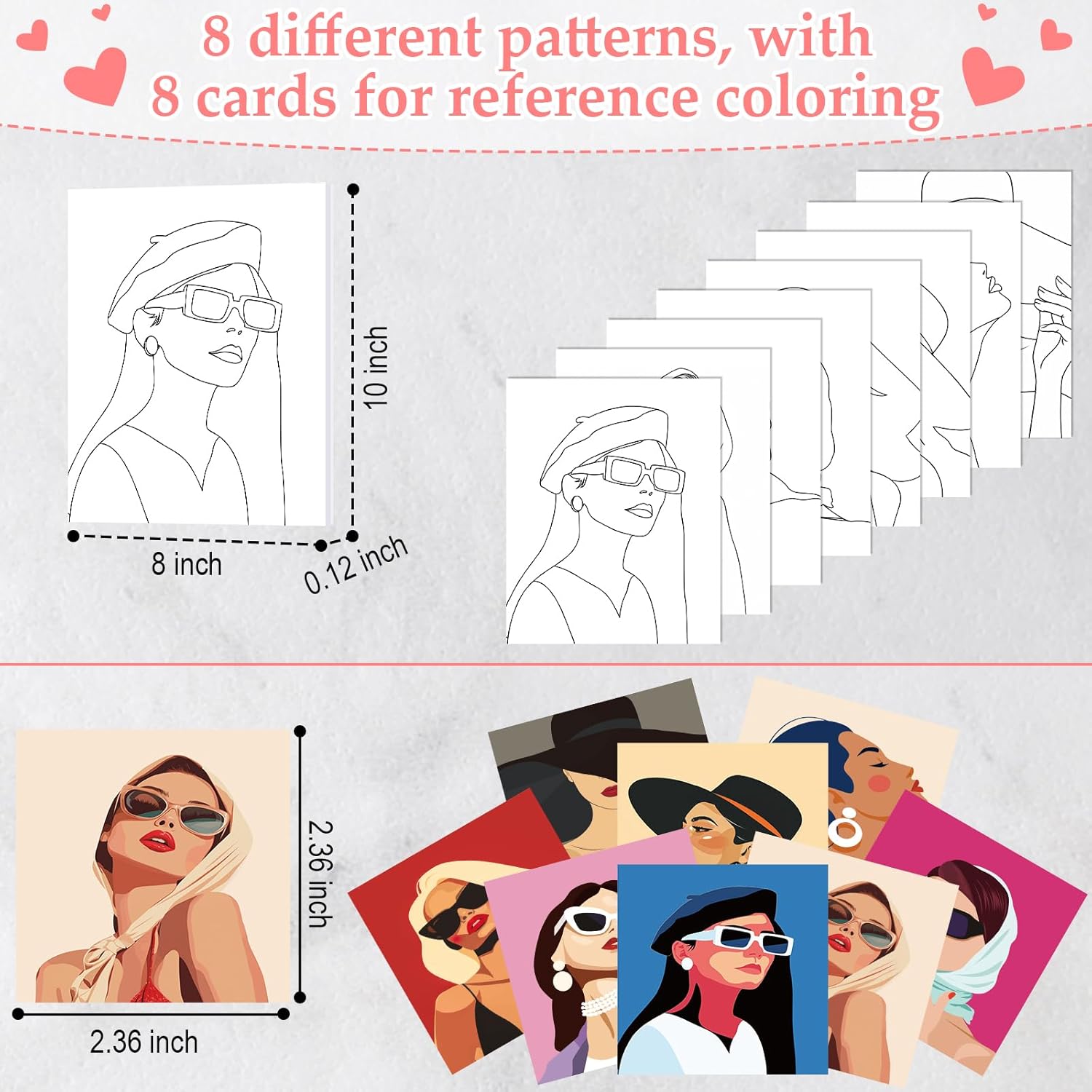 - Reference Matching Cards: you can doodle by following the reference cards provided, and you can explore different color schemes and hues; After the painting is finished, it can be given to friends as a gift, or these canvas paintings can instantly transform your room into an art gallery, can be displayed at home as an ornament