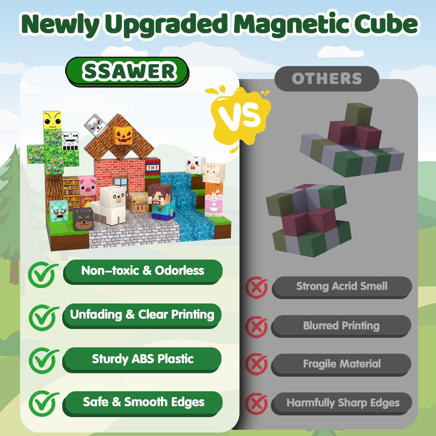 - 【Premium Quality Material】Meet US toy standard and safety test approved. Our magnetic building blocks are made of durable ABS plastic, embedded with 8 magnetic contact points to enhance magnetic force, perfect for kids of ages 3 4 5 6 7 8 -12 to easily stick cubes together and build sturdy structures.