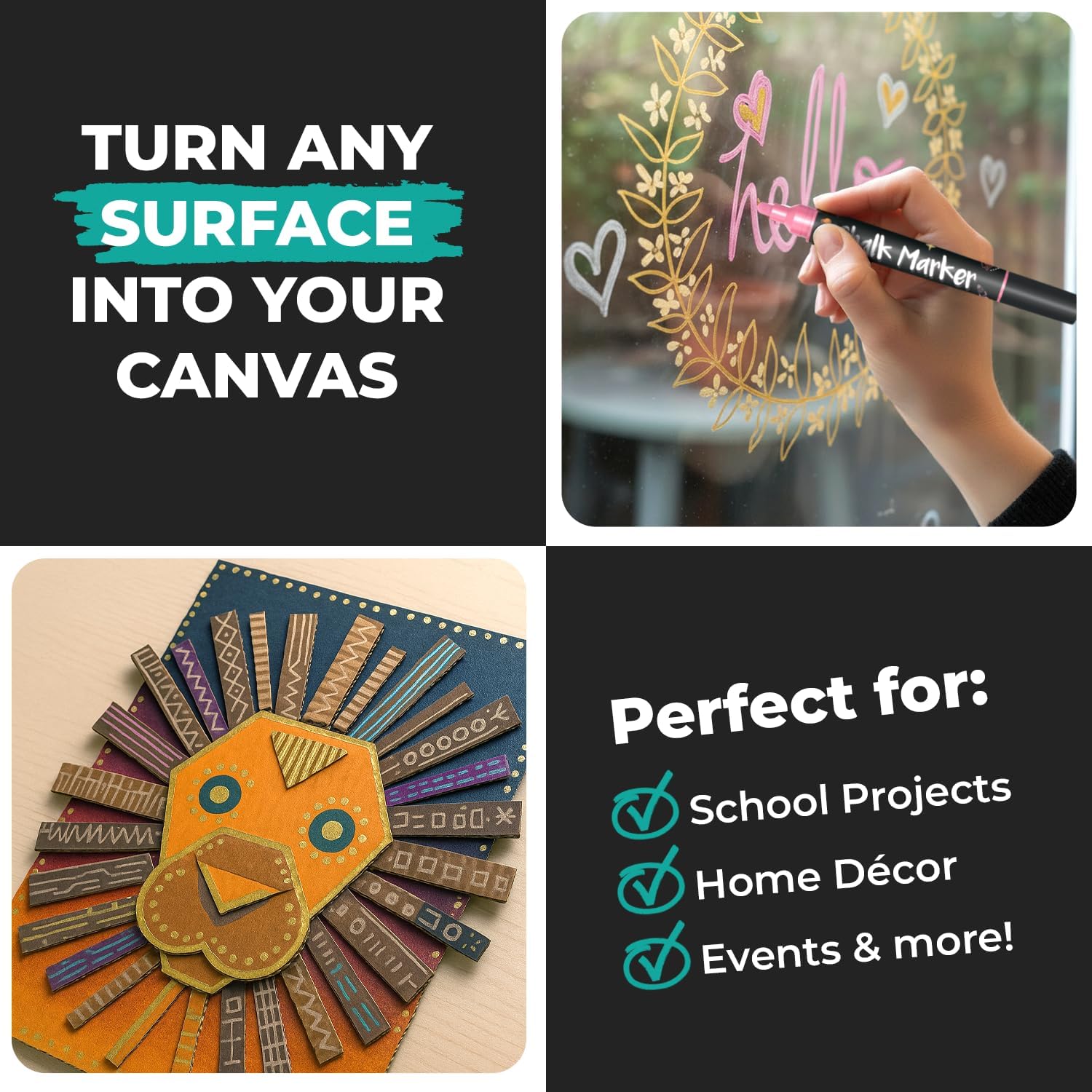 - Perfect for Business & Home - Ideal chalk board markers for teachers, artists & office use. Make eye-catching mirror signs, glass window displays & wall calendars. These blackboard chalk markers create professional-looking displays effortlessly.