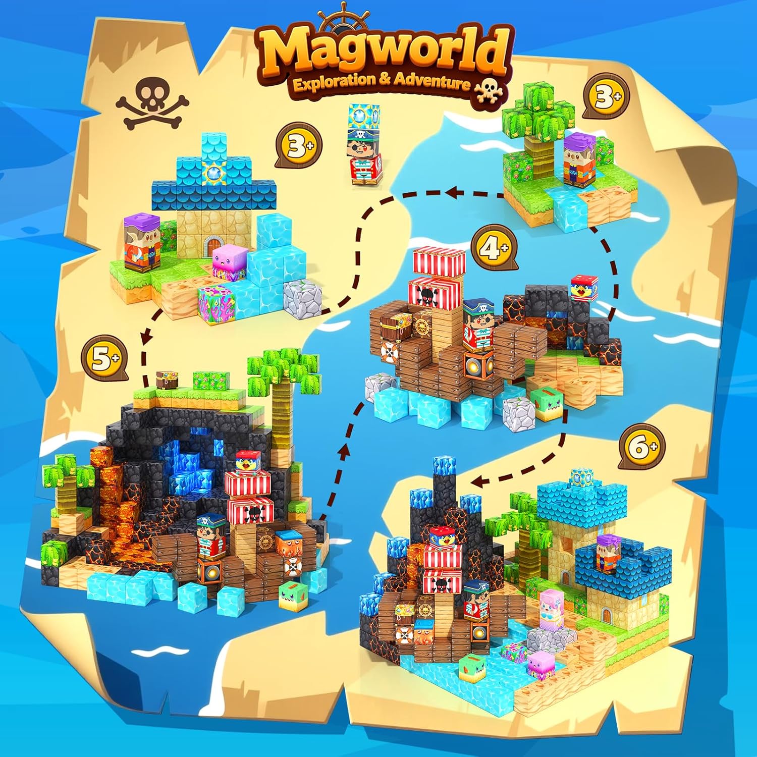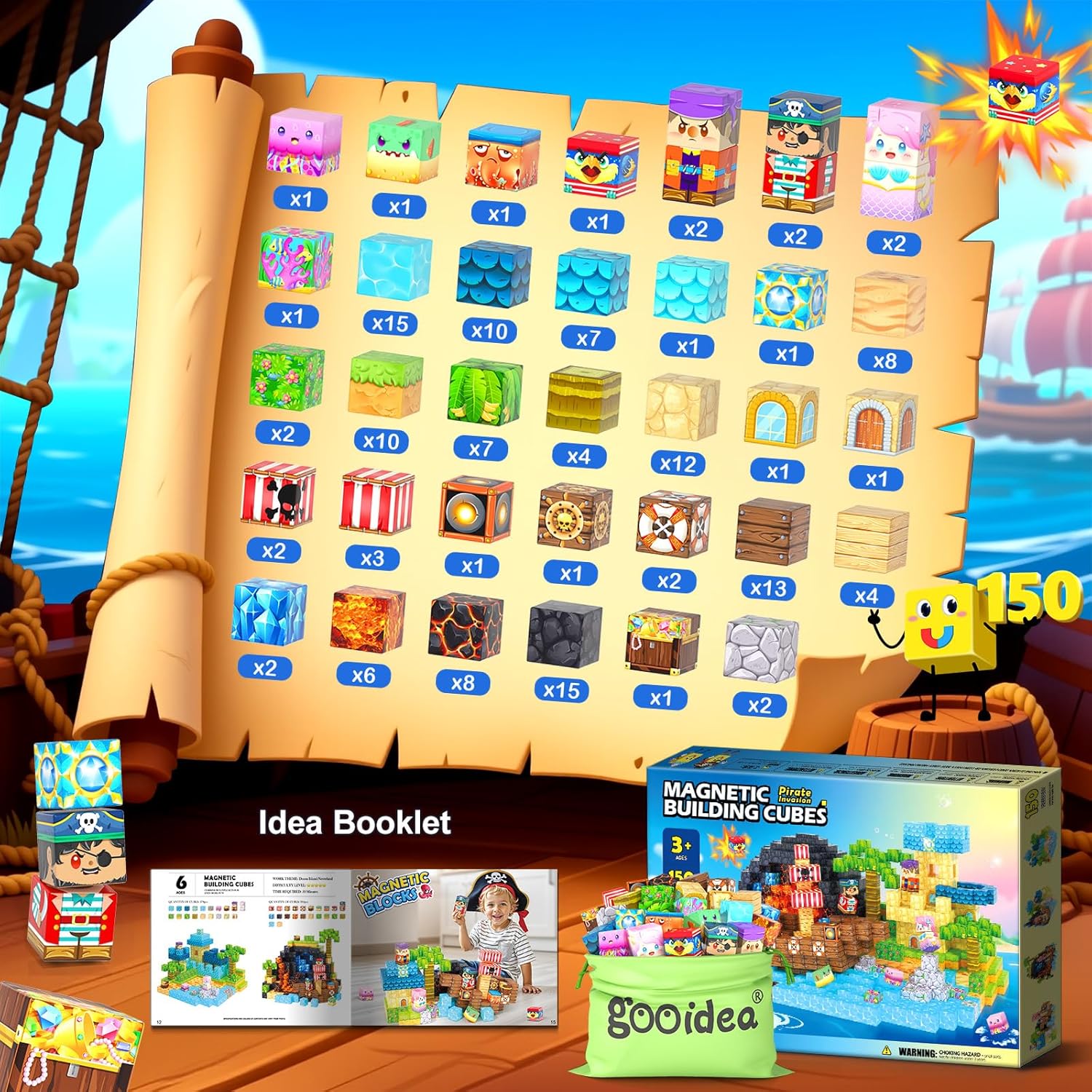 - 【Triple-Theme Magnetic Blocks】Embark on a magical ocean adventure with our 150 magnetic blocks, featuring 34 playful designs across 3 exciting themes—pirate ships, mermaid castles, and underwater worlds. Each block is designed with clear, recognizable patterns, making it easy for kids ages 3+ to start building and spark endless creativity.